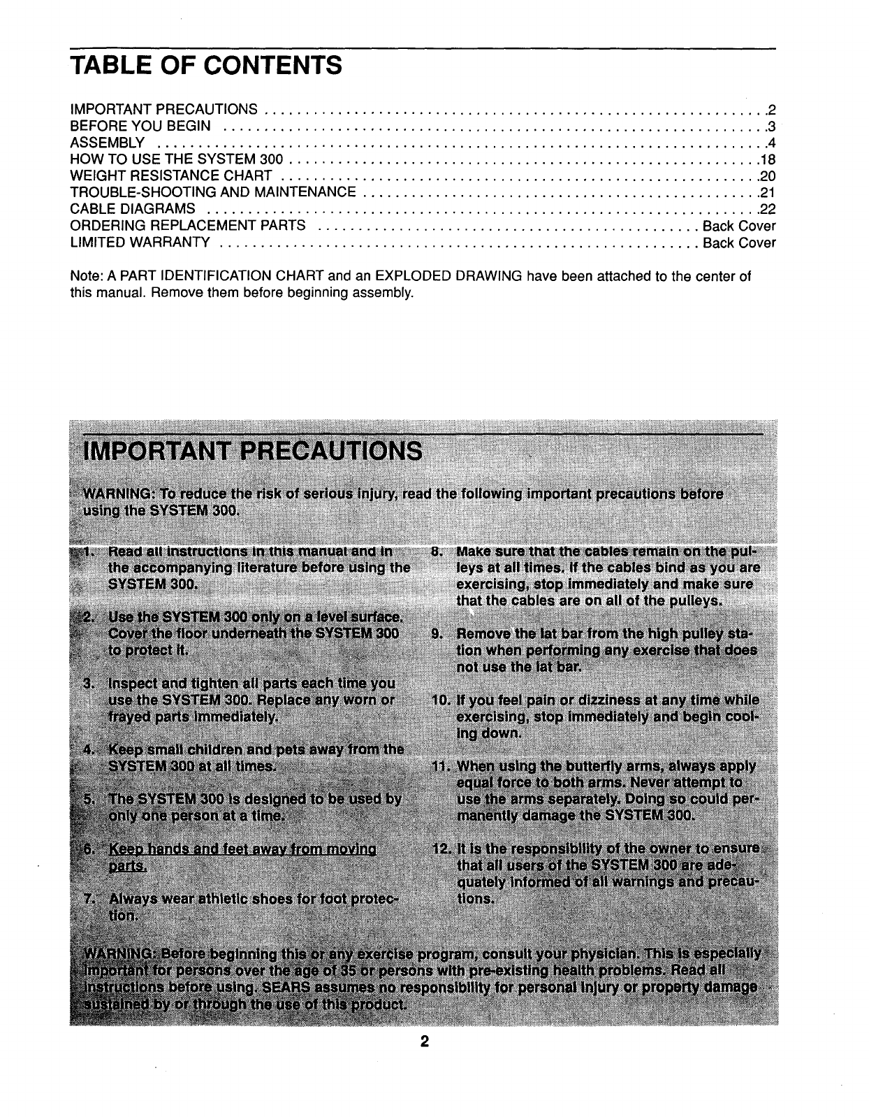 States and SEARS will repair or replace the WEIGHT SYSTEM EXERCISER, free of charge.