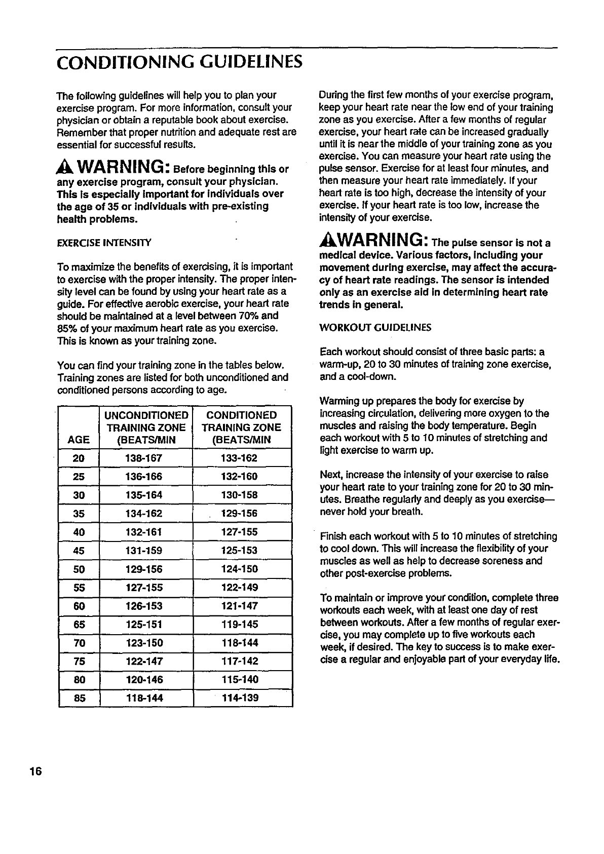 CONDITIONING GUIDELINES ............................................................... 16