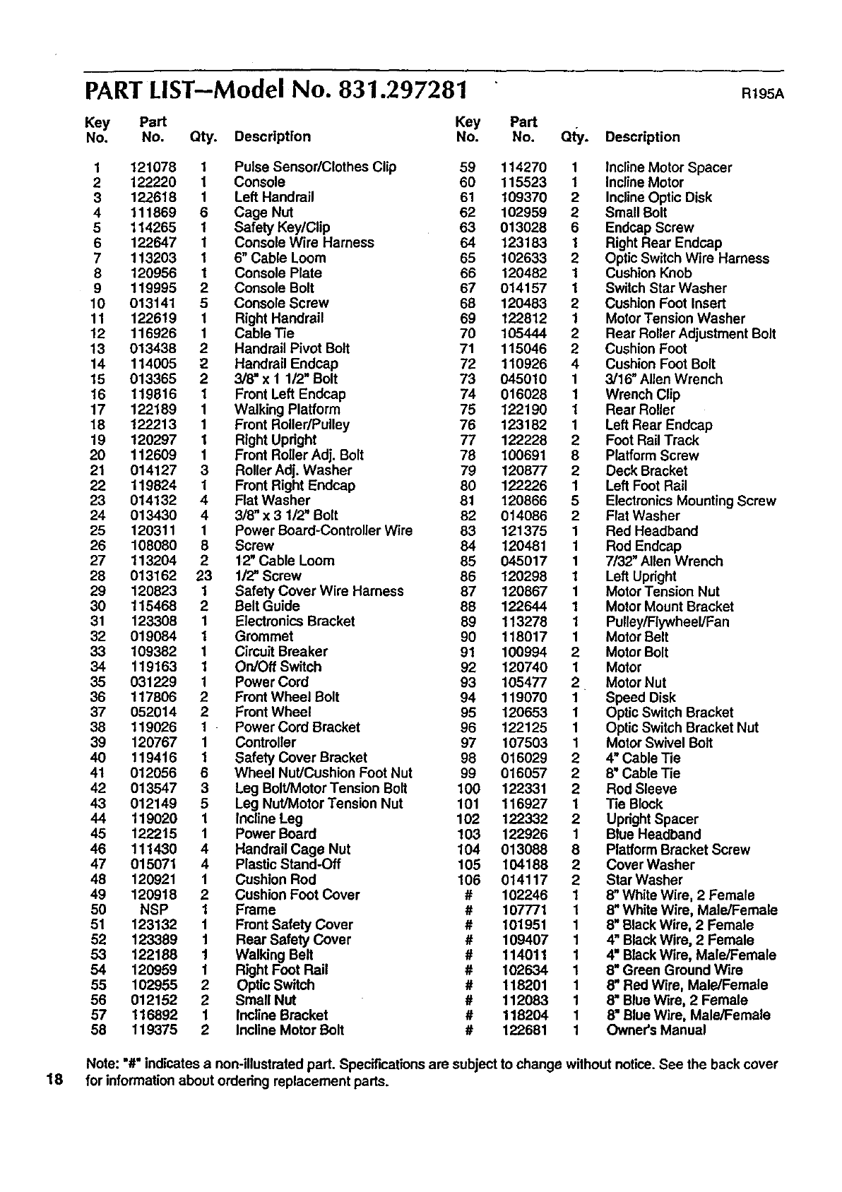 18 for information about ordedng replacement parts.