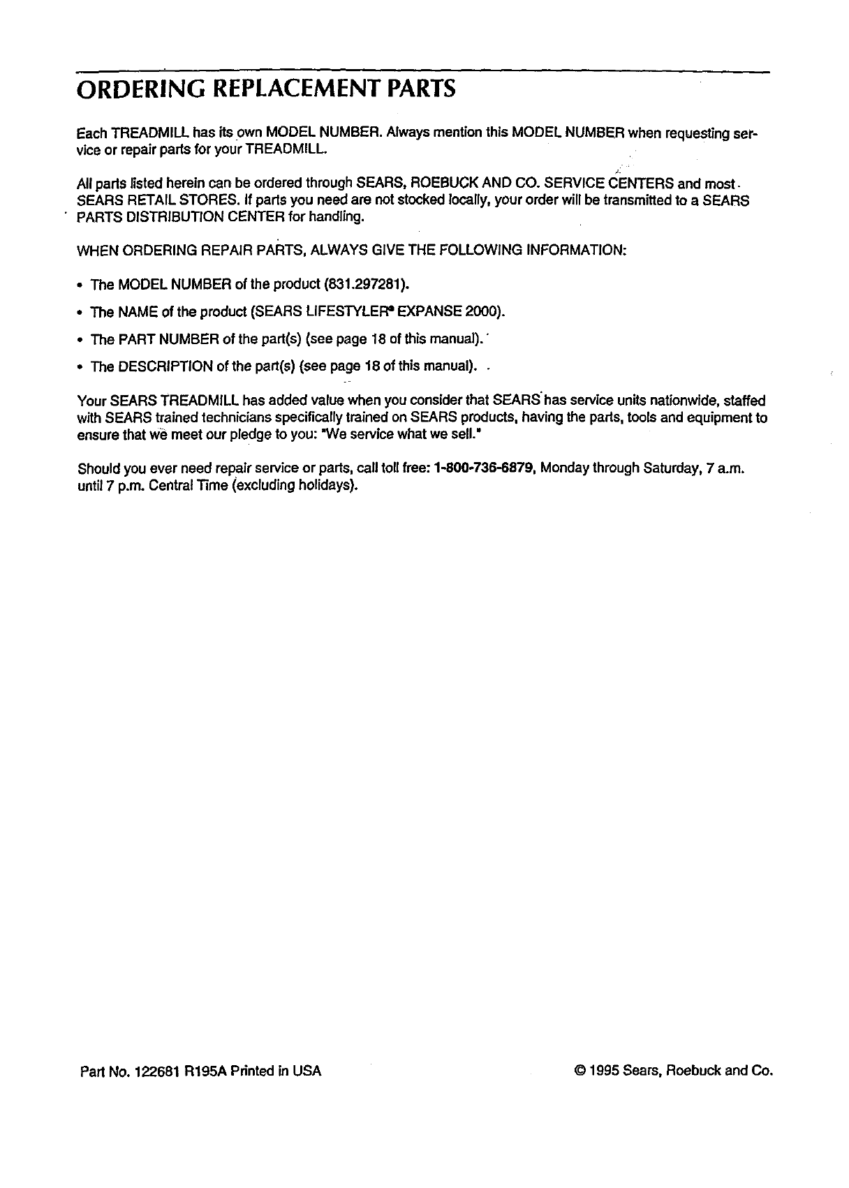Part No. 122681 R195A Pdnted in USA © 1995 Sears, Roebuck and Co.