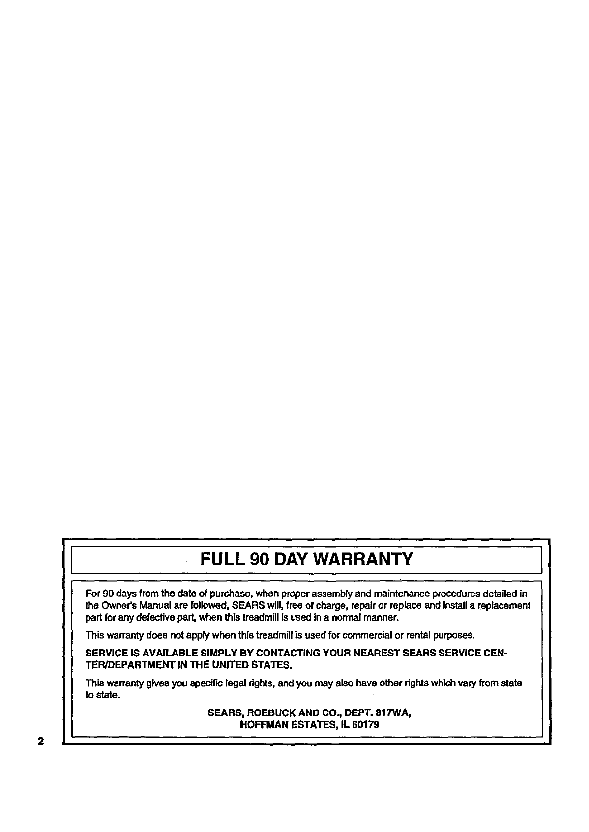 Your SEARS TREADMILL has added value when you consider that SEARS has service units nationwide, staffed