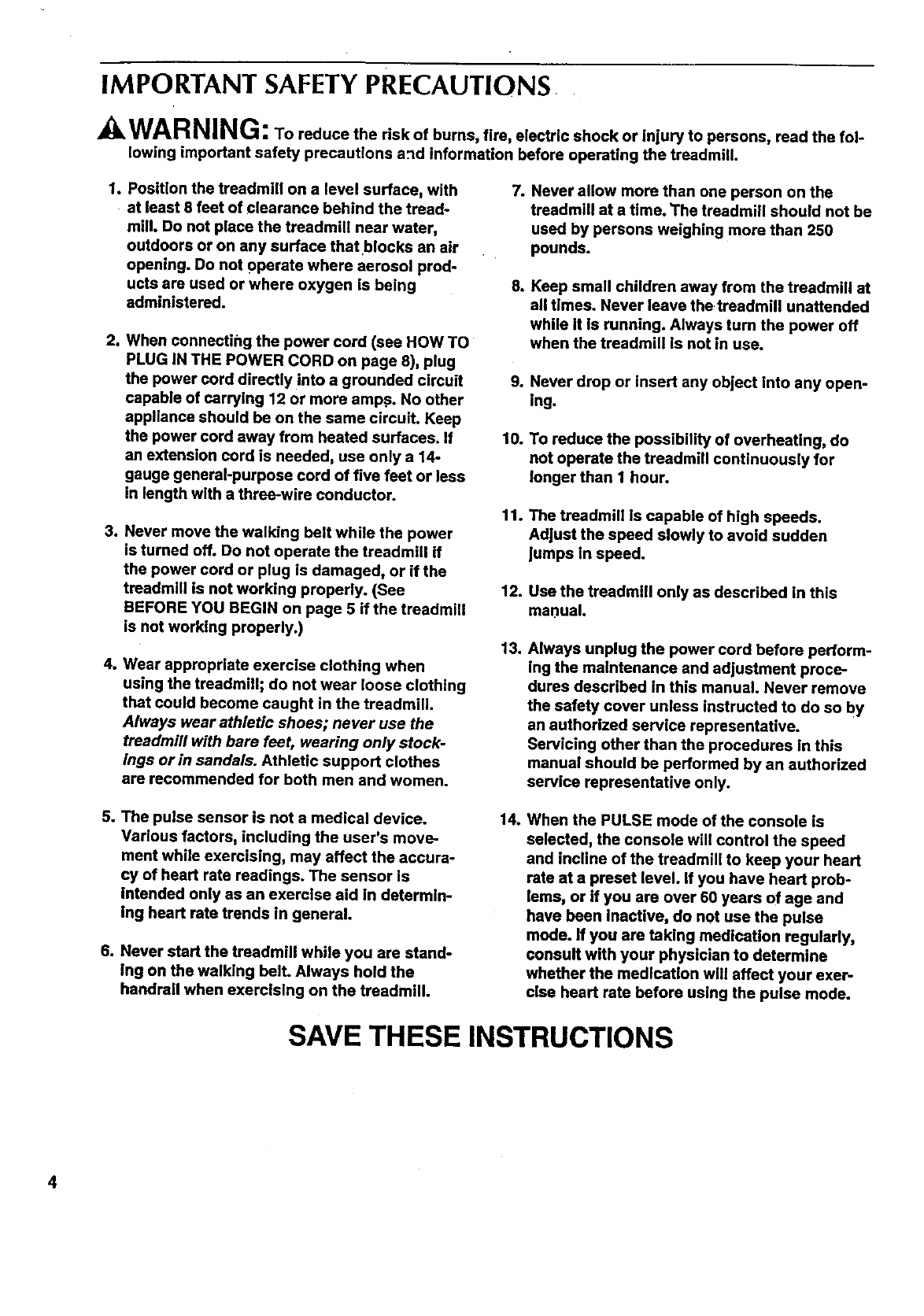 lowing important safety precautions a_d information before operating the treadmill.