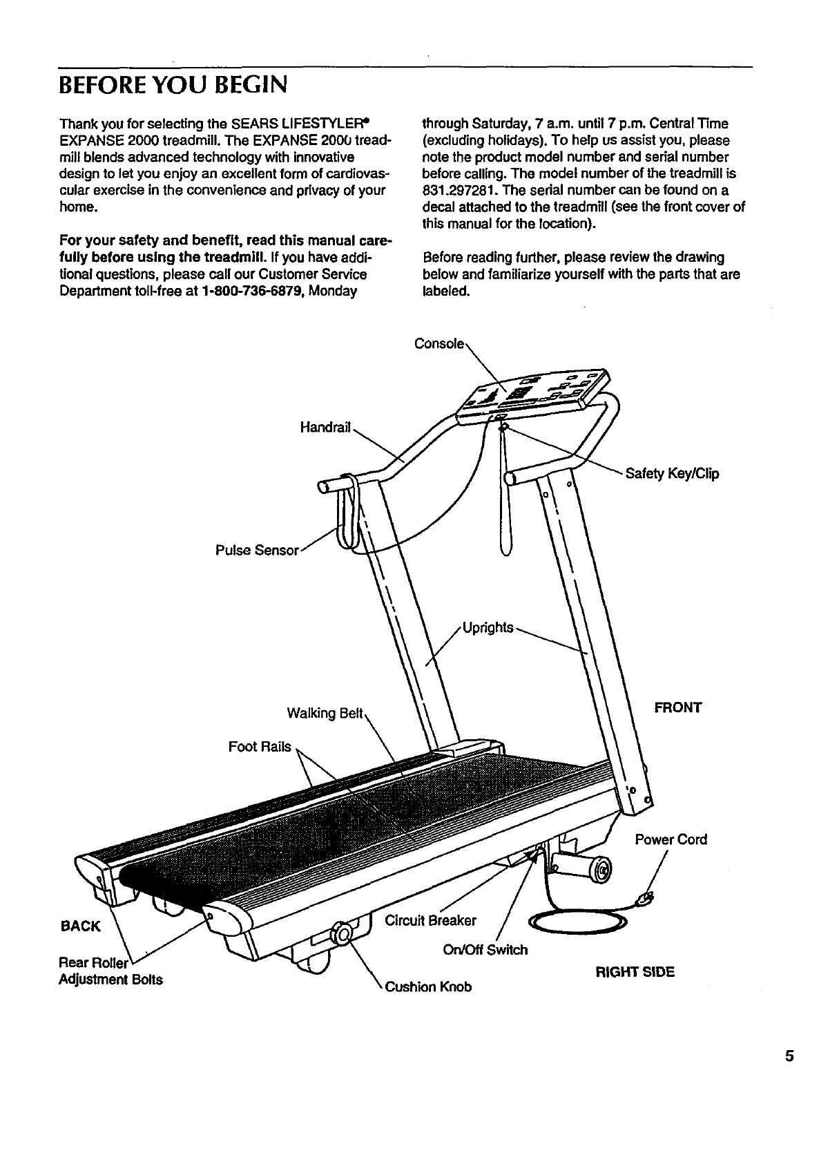 BEFORE YOU BEGIN on page 5 if the treadmill
