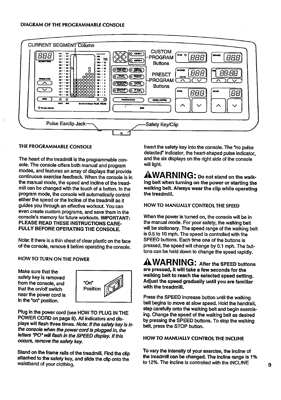 HOW TO MANUALLY CONTROL THE INCLINE ............................................ 9