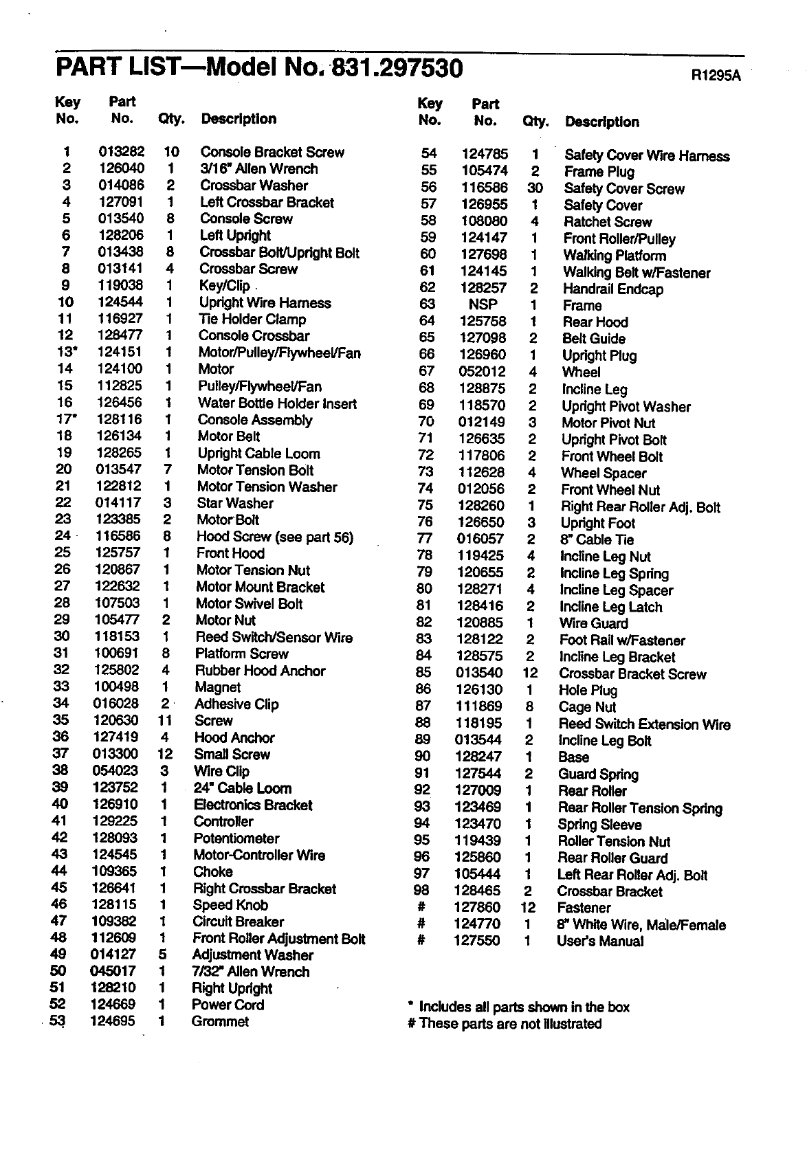8 013141 4 Crossbar Screw 61 124145 1 Walking Belt w/Fastener