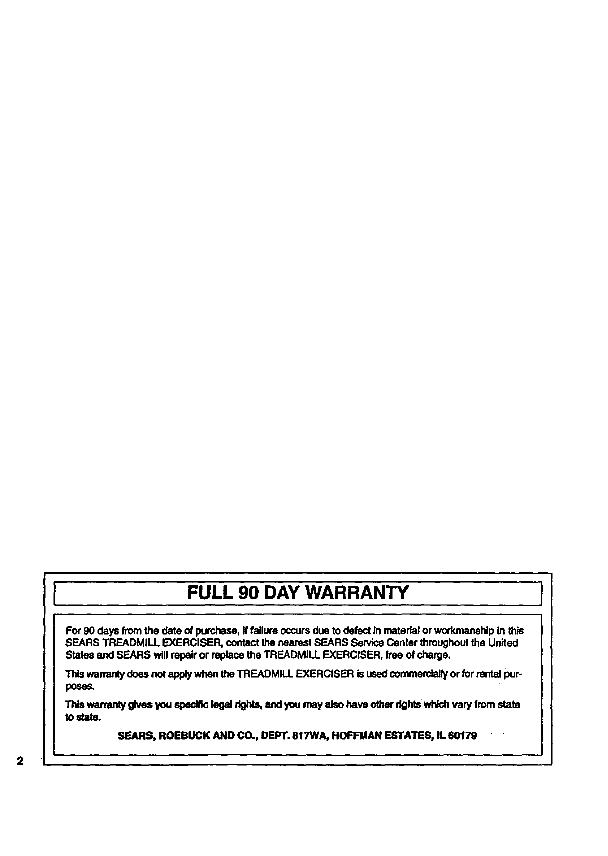 SEARS TREADMILL EXERCISER, contact the nearest SEARS Service Center throughout the United