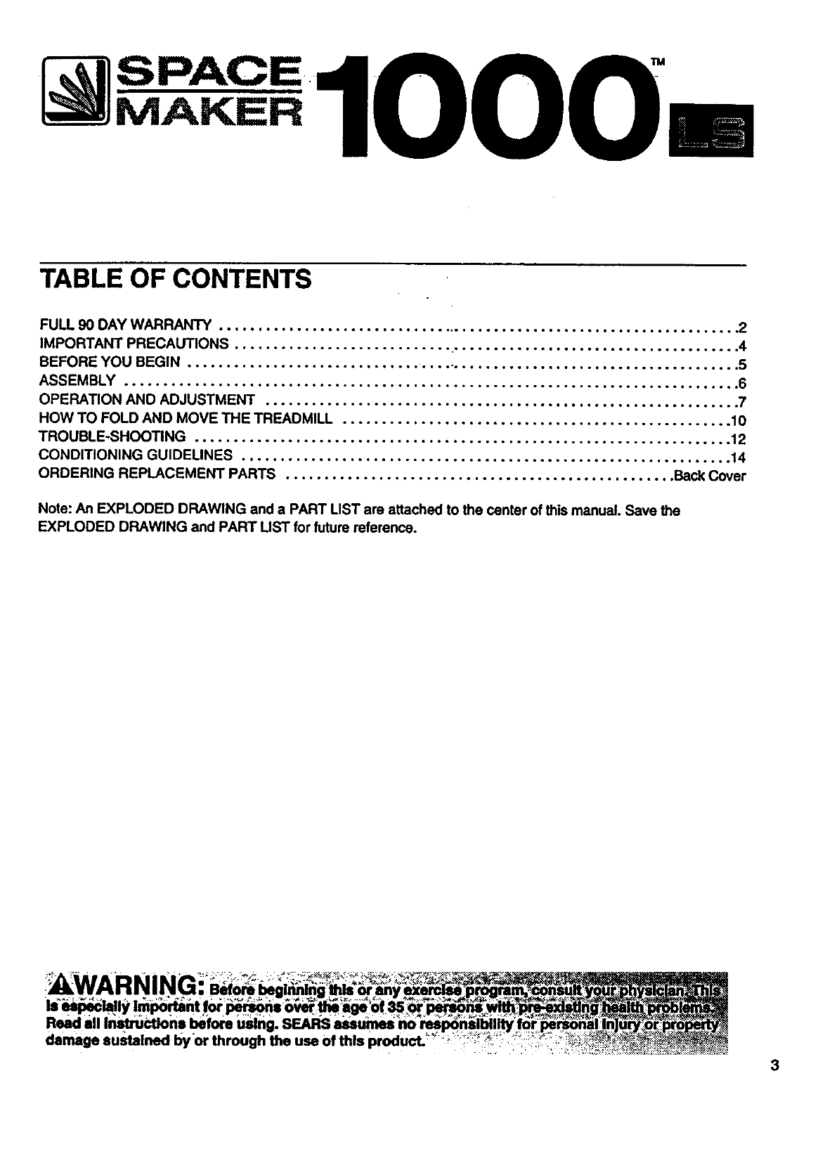 •The NAME OFTHE PRODUCT (SEARS®.SPACE MAKER 1000