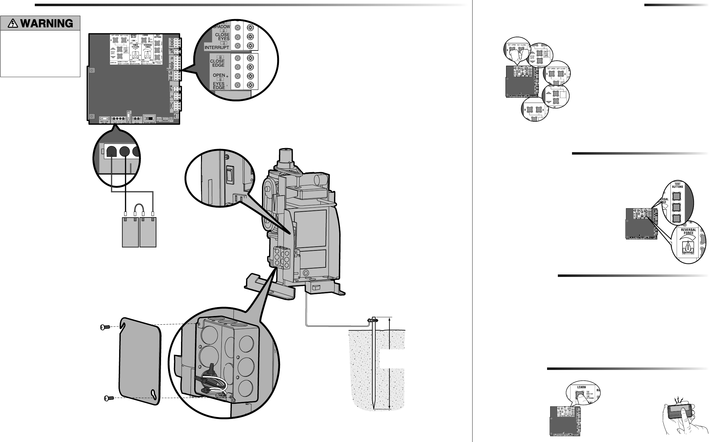 1 Open and close the gate with the test buttons, ensuring that the gate is stopping at the proper open and close limit