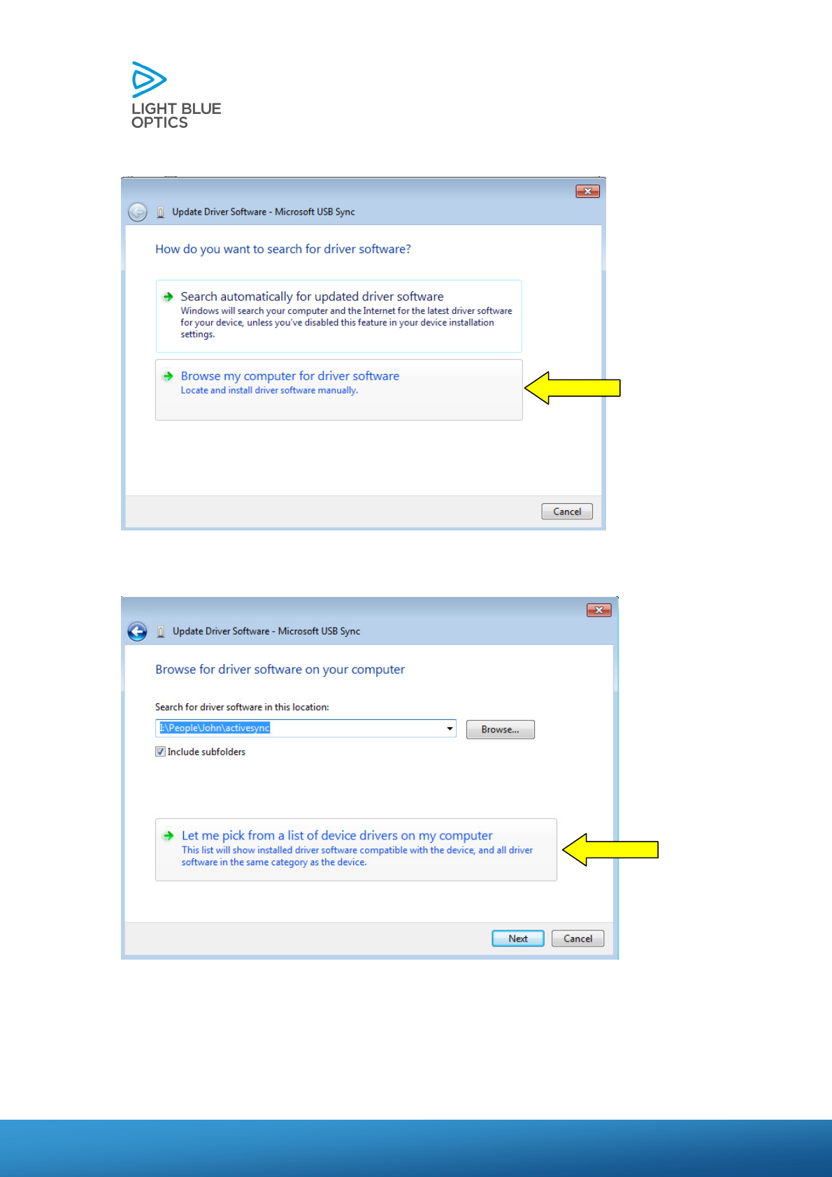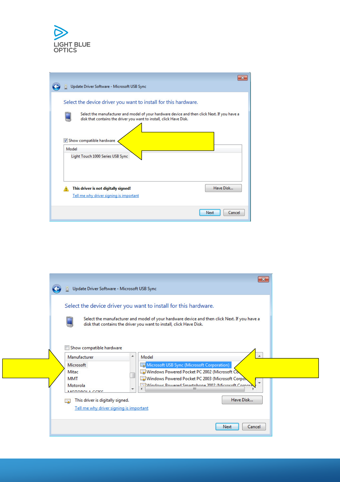 7. The Update Driver Software – Microsoft USB Sync window will appear.