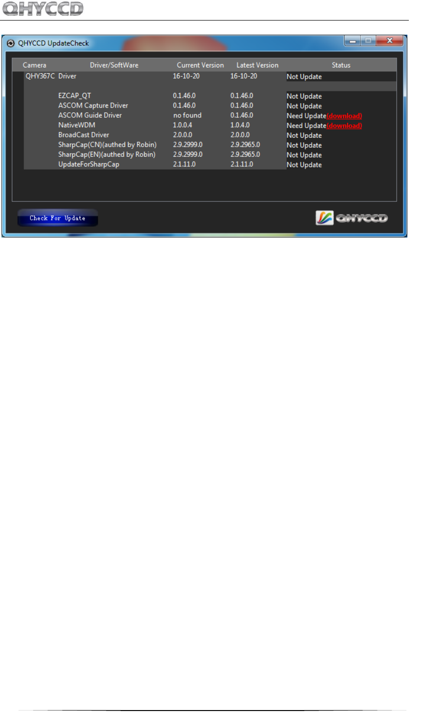 6. QHYCCD has developed a software named UpdateCheck that can check if the drivers installed