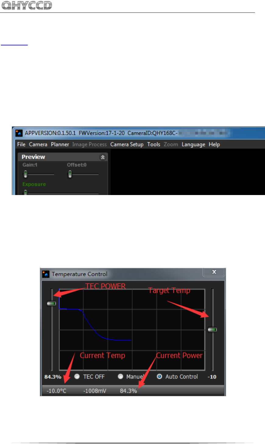 8. After you connect 12V power supply for QHY168C to power the TEC cooling circuit, you can