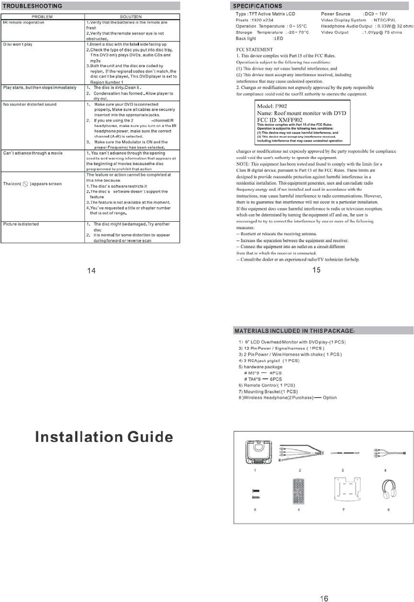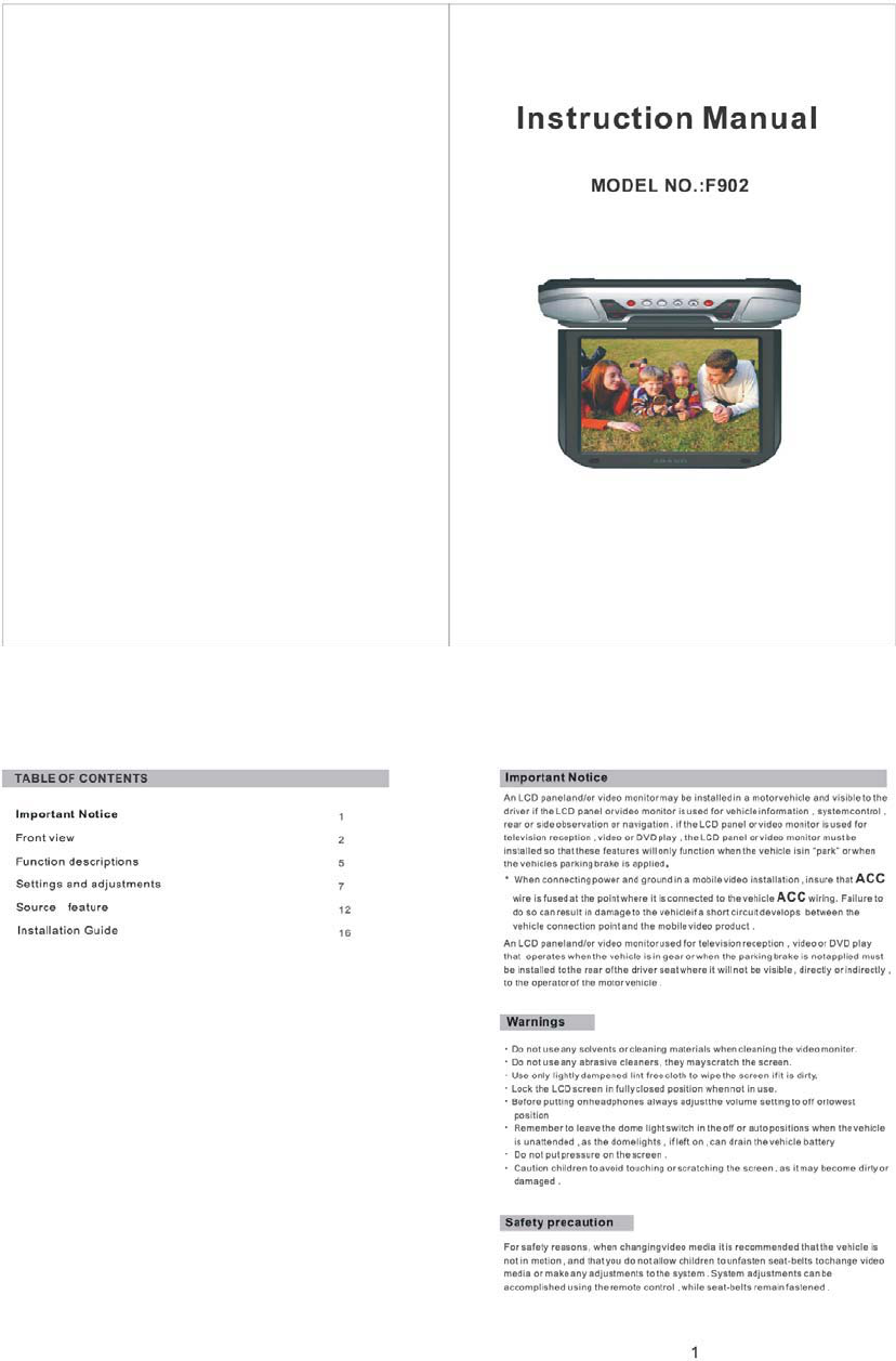 Lightcomm Technology F902 Roof Mount Monitor with DVD User Manual USer Manual