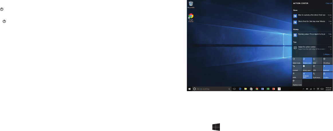 through the Action Center. View alerts, notifications, tablet settings, etc.