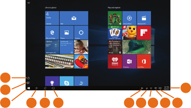 10. Action Center: View alerts, notifications, and tablet settings.