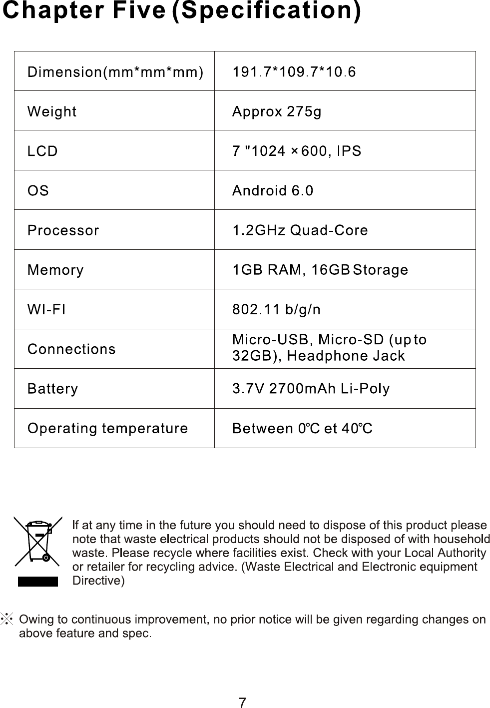 Lightcomm Technology MID721RB 7 Inch Quad Core Tablet User Manual
