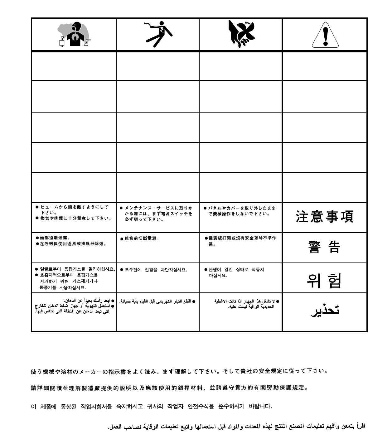 READ AND UNDERSTAND THE MANUFACTURER’S INSTRUCTION FOR THIS EQUIPMENT AND THE CONSUMABLES TO BE
