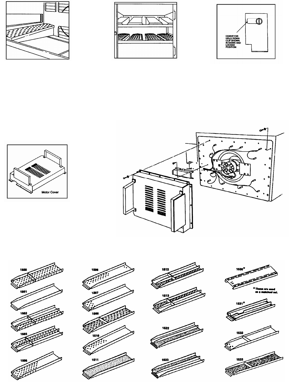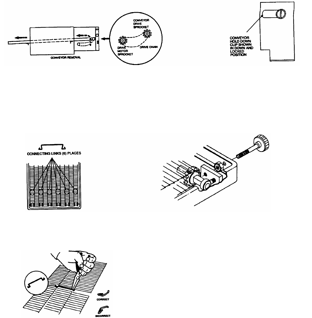 oven wall. Next, slide the conveyor hold-down clips so