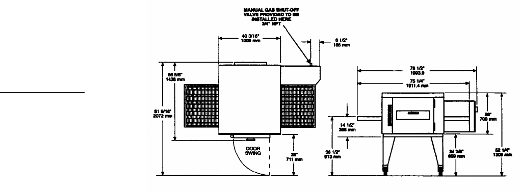 · Adequate clearance for air openings to the combustion control chamber on both sides of the oven is required.