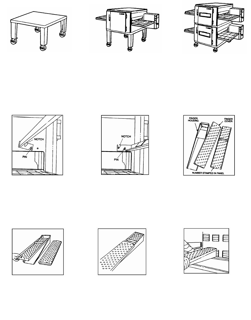 The Model 1100 Series Ovens (Impinger® II) may be mounted on top of the 1000-1200-1400 Series units. A
