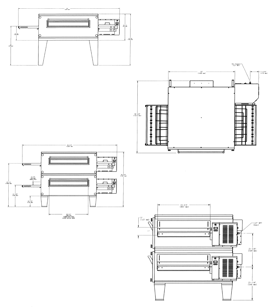 · Adequate clearance for air openings to the combustion control chamber on both sides of the oven is required.