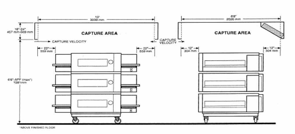 · It is required that the oven be placed under a ventilation hood to provide for adequate air supply and ventilation.