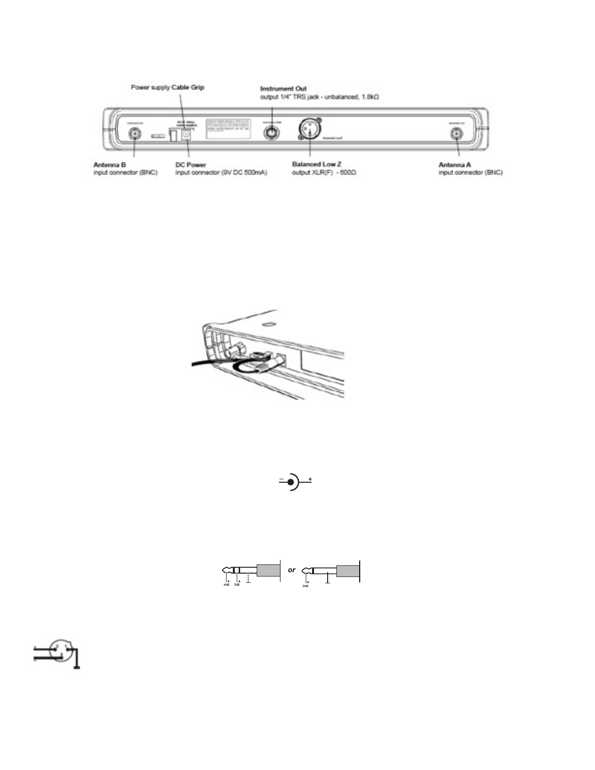 the 1/8" threaded-collar locking connector, then connect the rackmount receiver to your amplifier or mixer. Finally, power up making