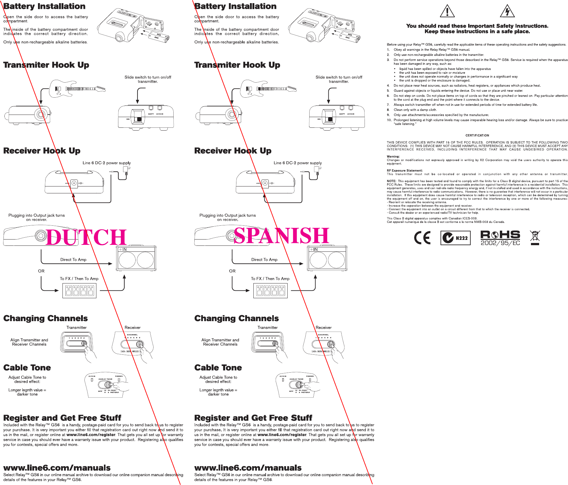 Line 6 Digital Wireless 916TBP06 Hybrid Transmitter RELAY G30 wireless guitar system User Manual