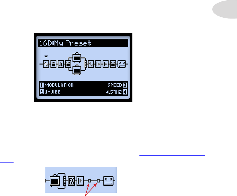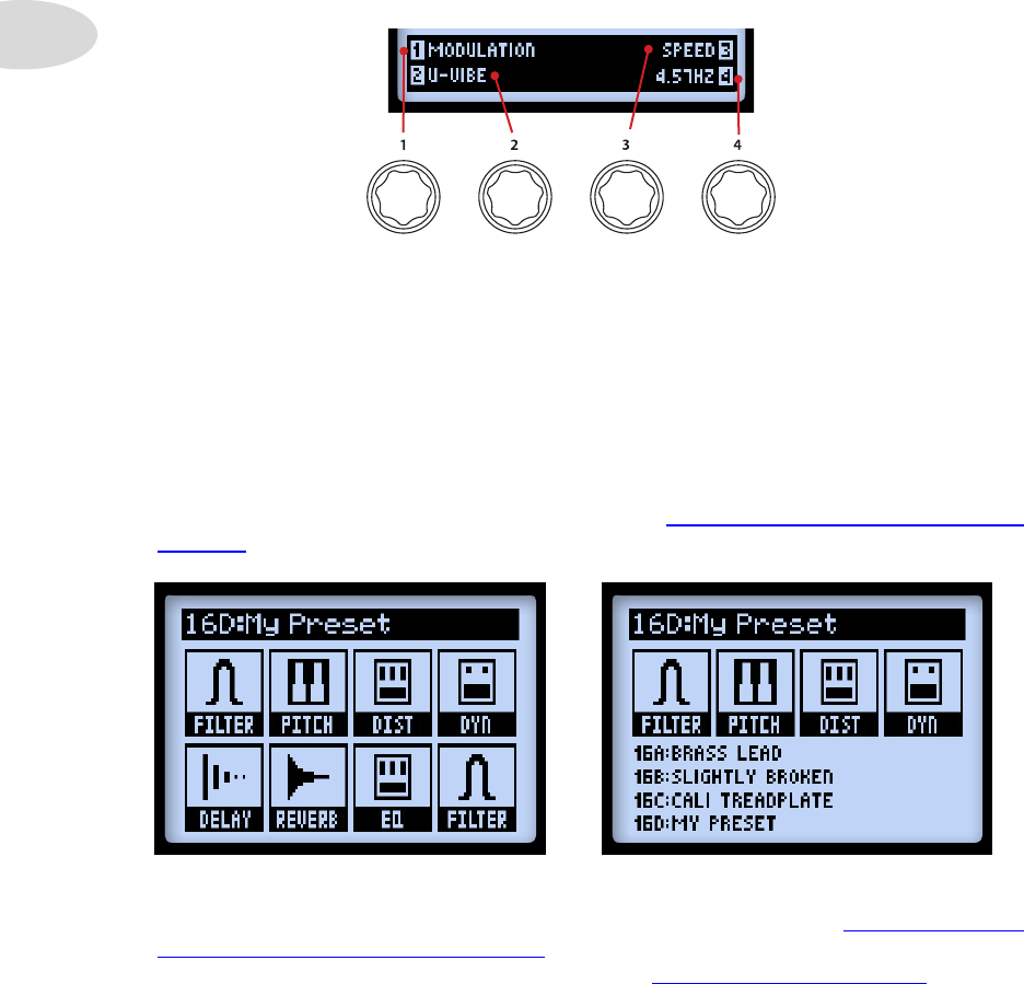 • Press Footswitches A, B, C & D: Internally this selects the respective Preset within