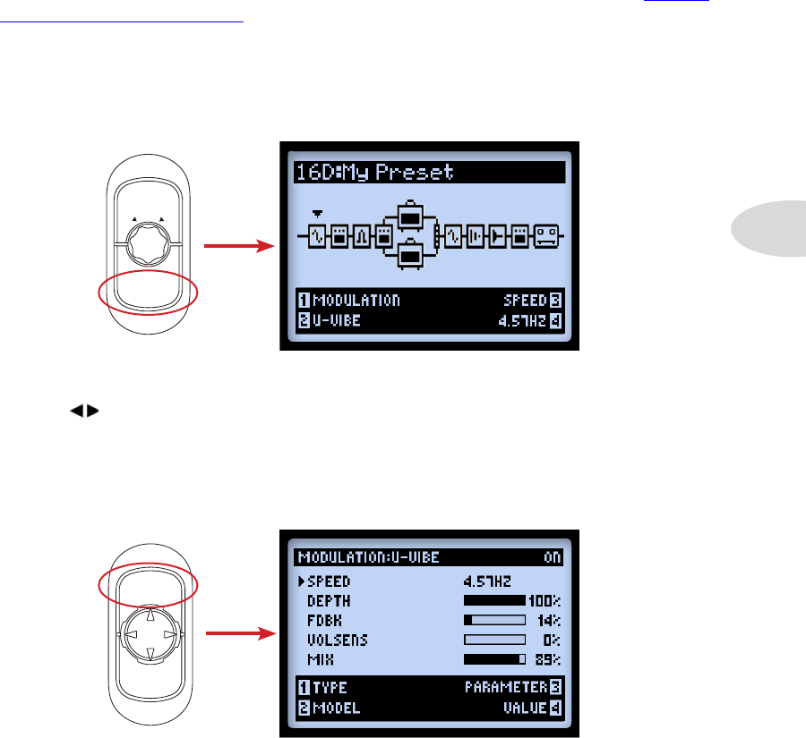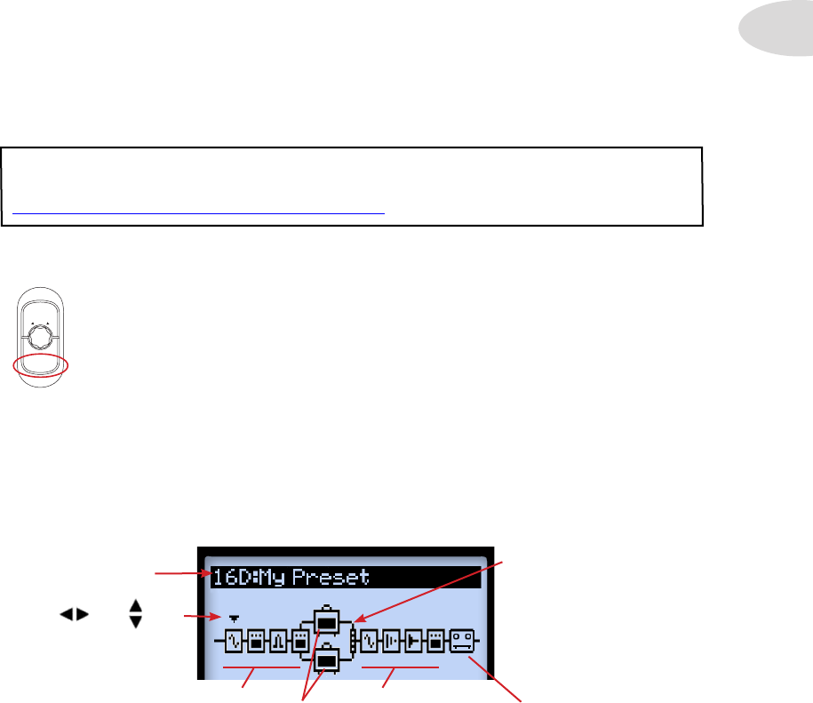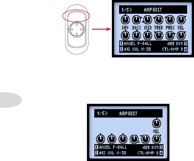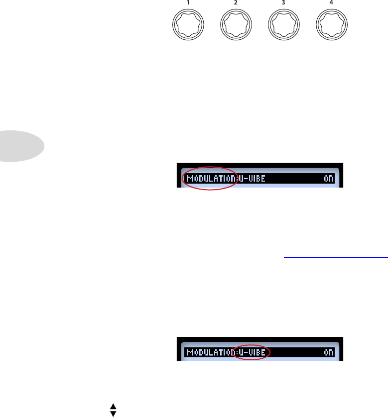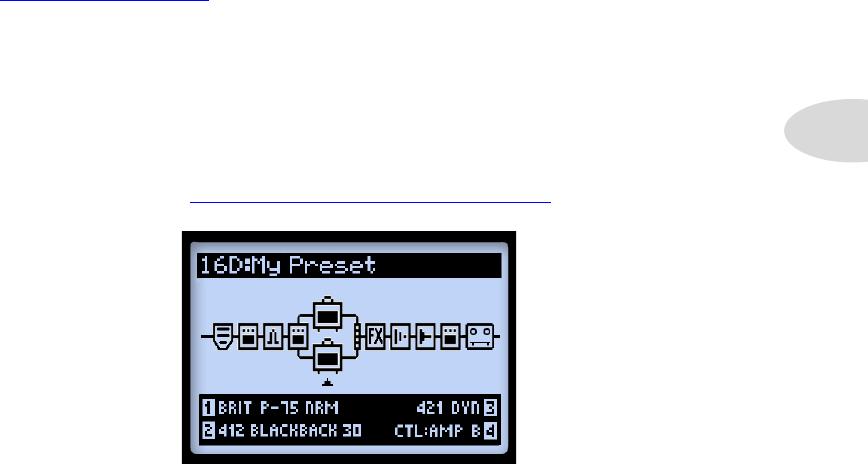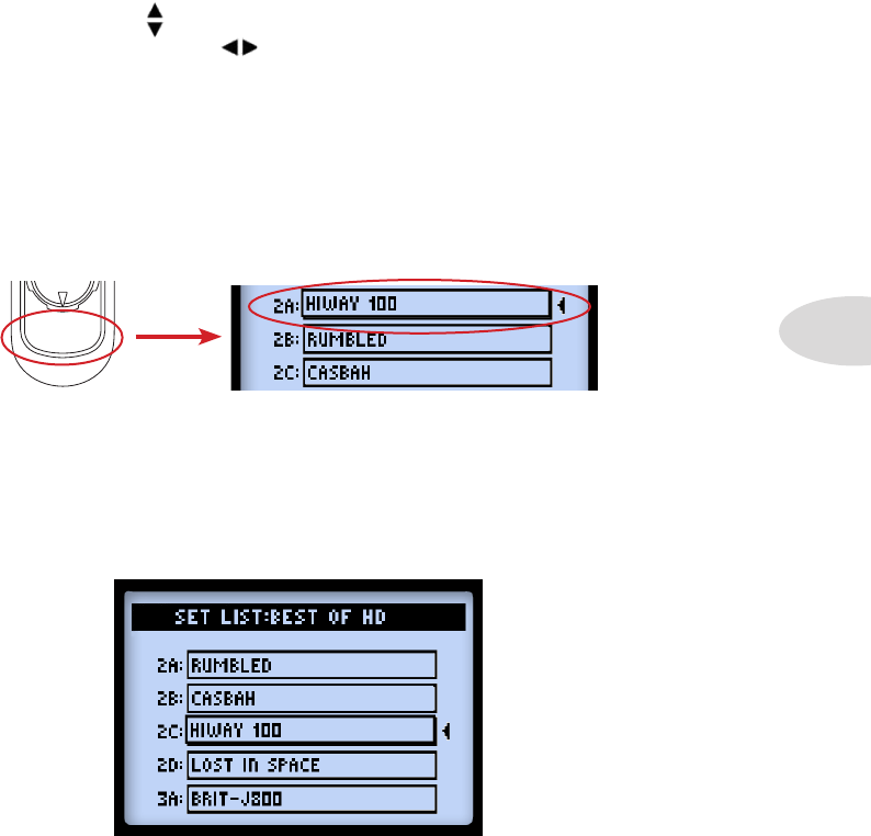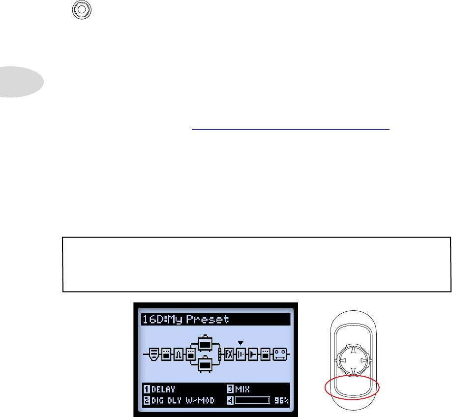 • Turning the PRESETS Knob: Internally on POD HD500, turning clockwise and