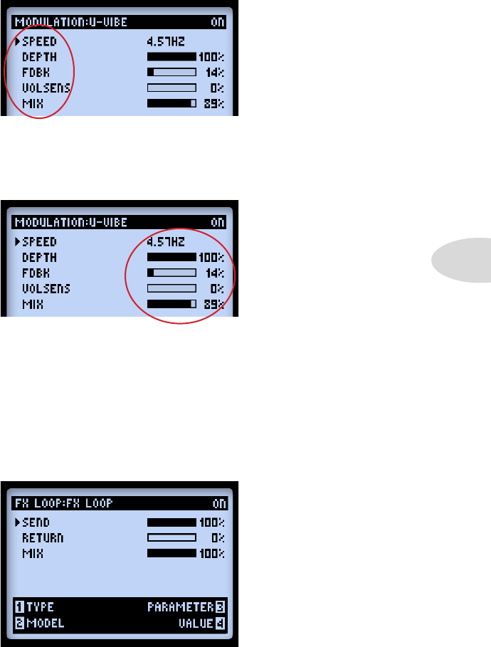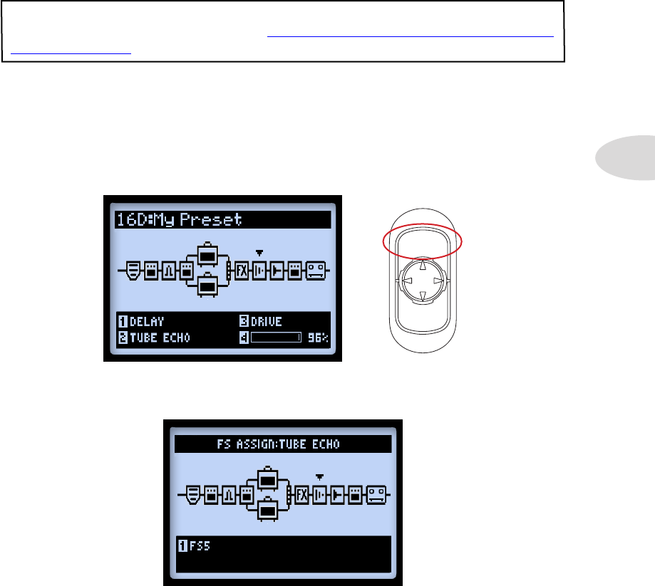 Use the and Nav. Disc buttons to select the desired footswitch or Exp Pedal control.