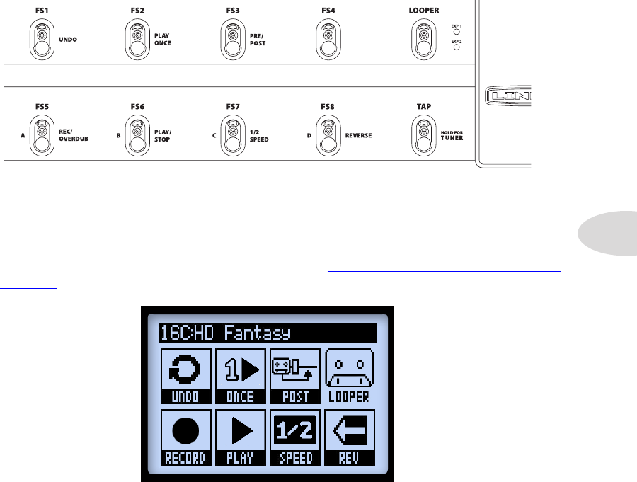 • FS1 - FS8, LOOPER, TAP and EXP TOE SWITCH footswitches can each be