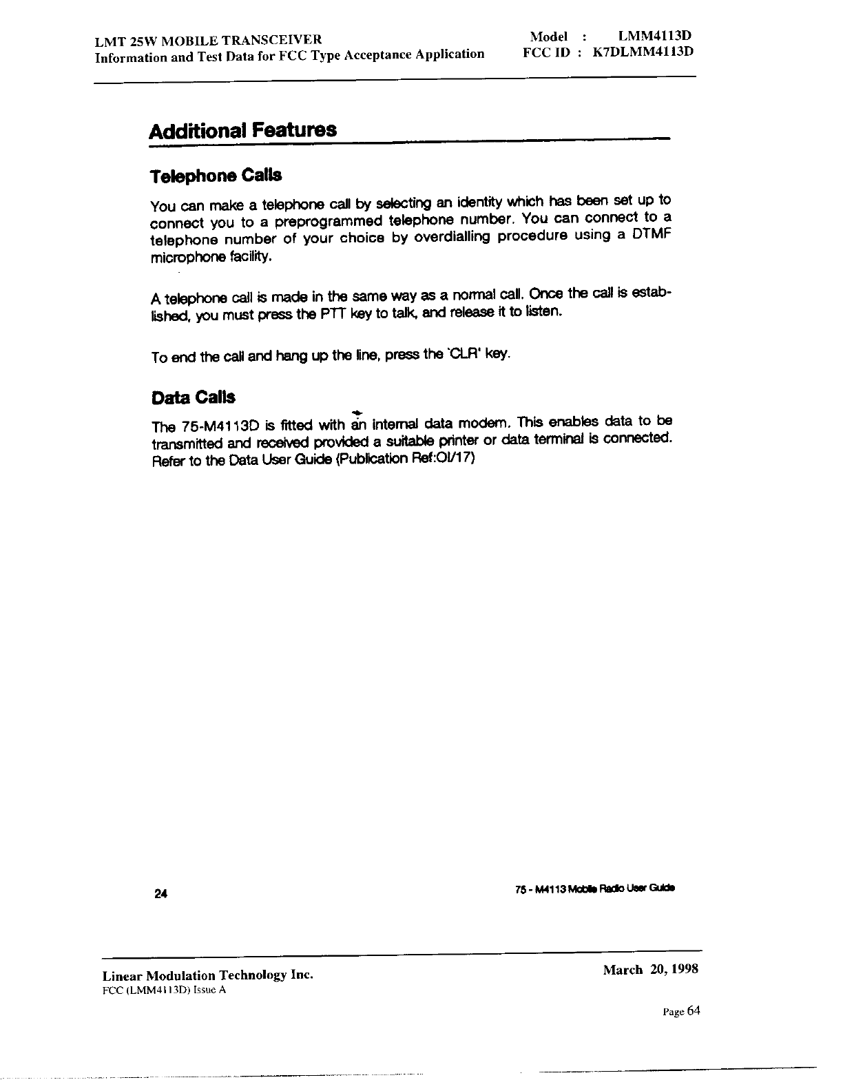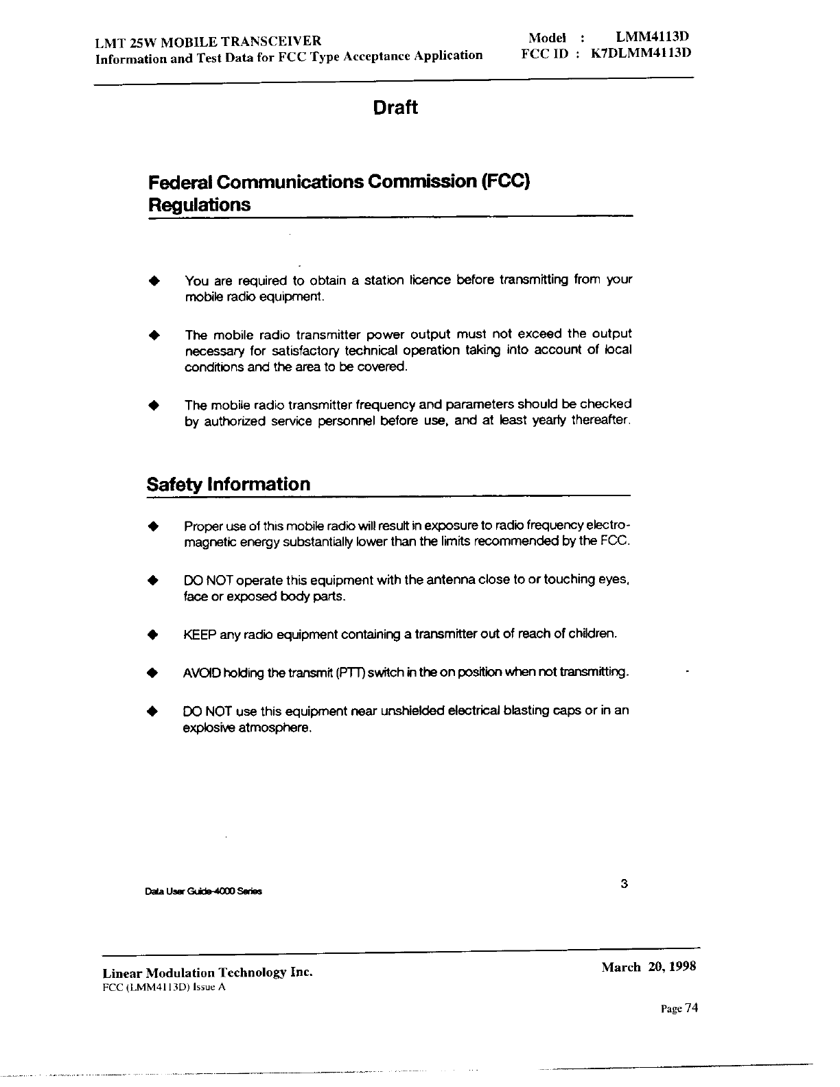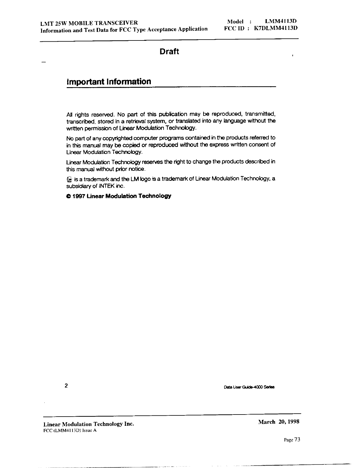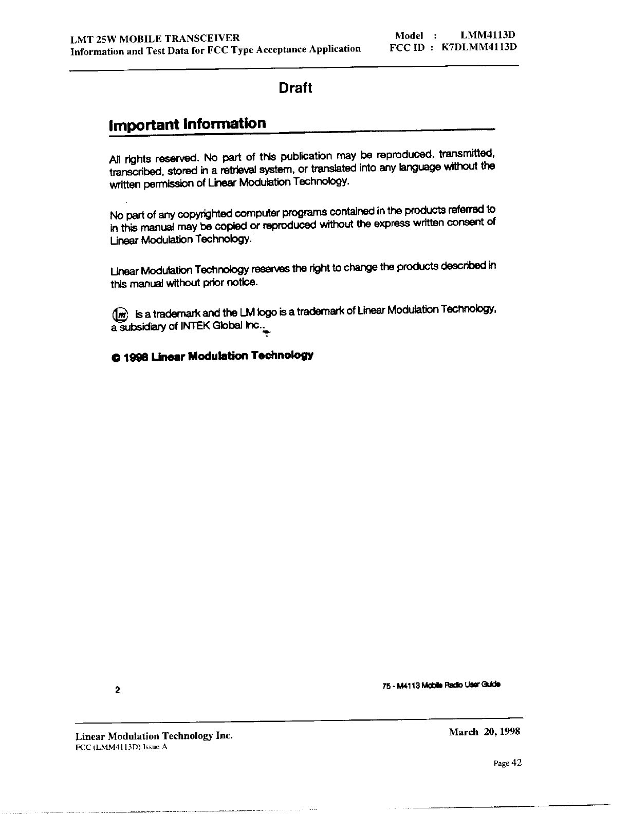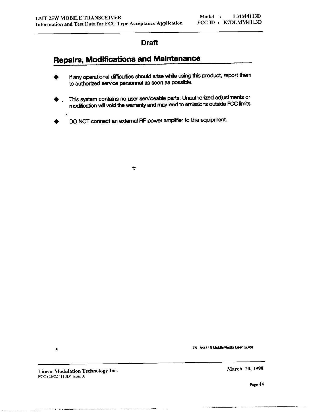 Linear Modulation Technology LMM4113D User Manual 8 Manual