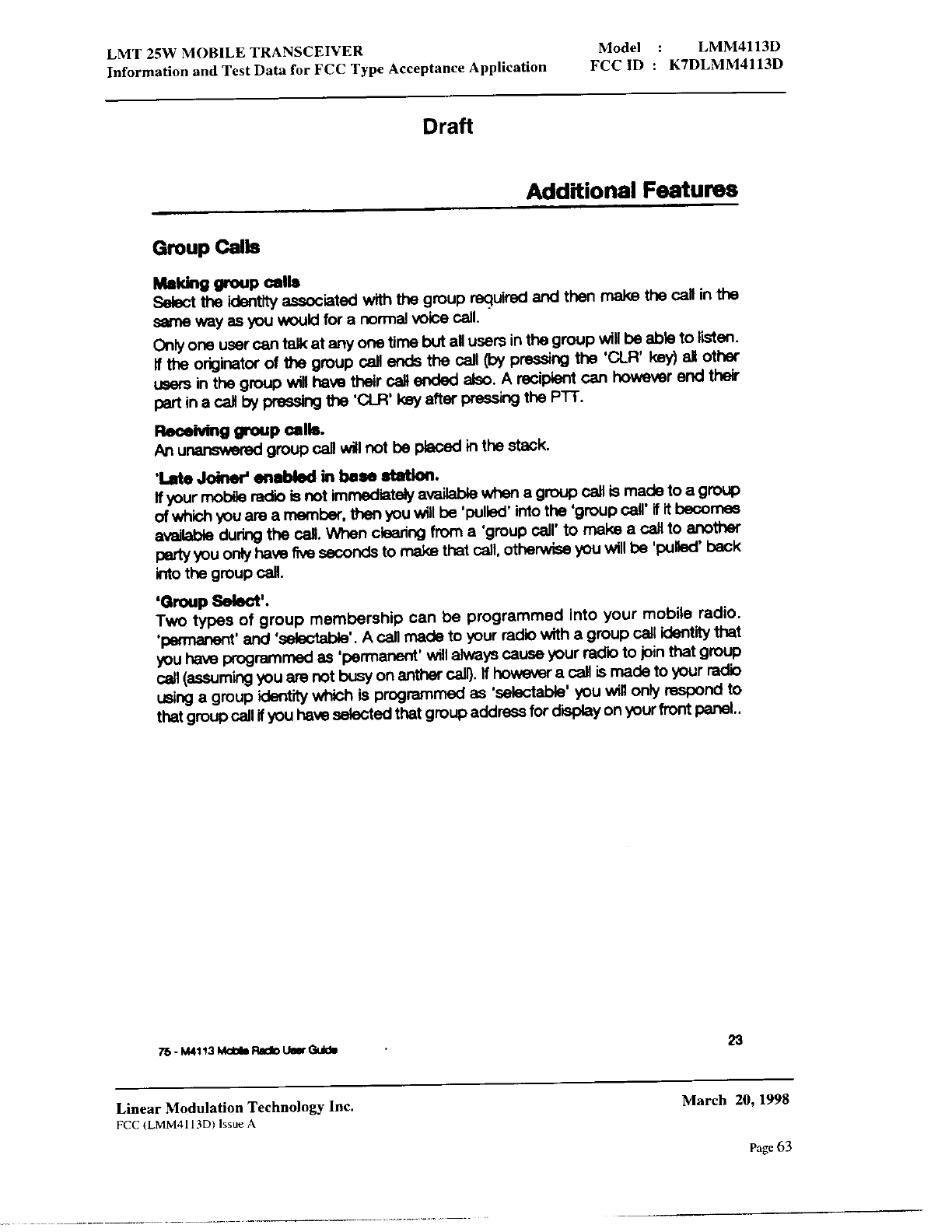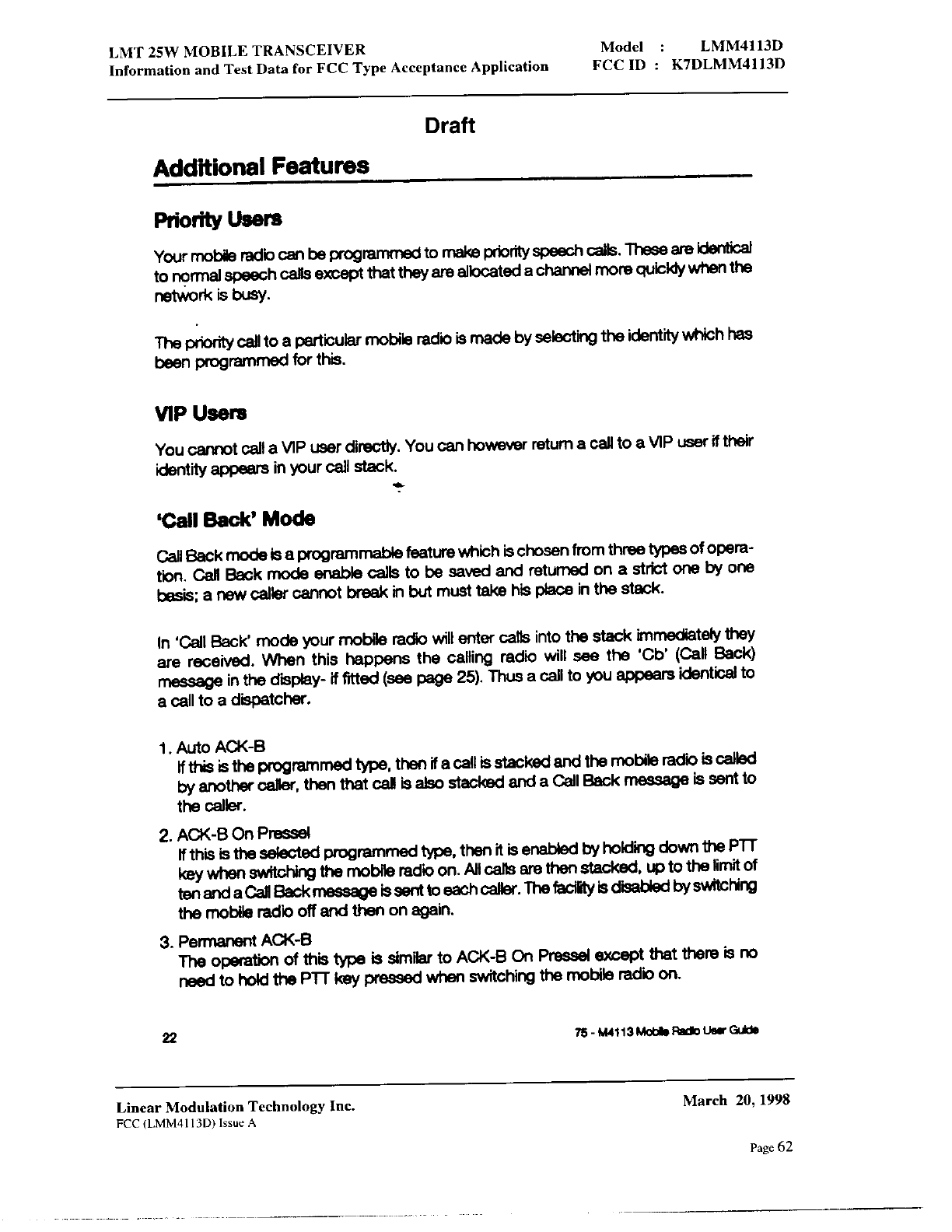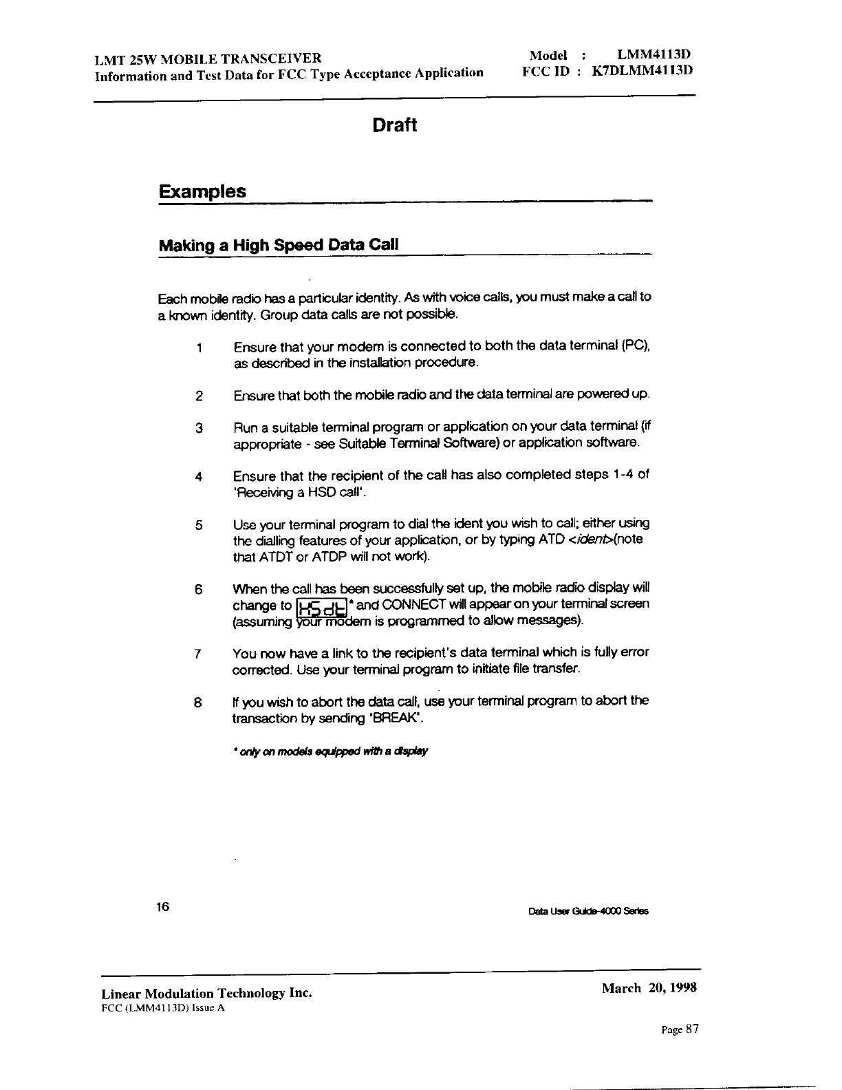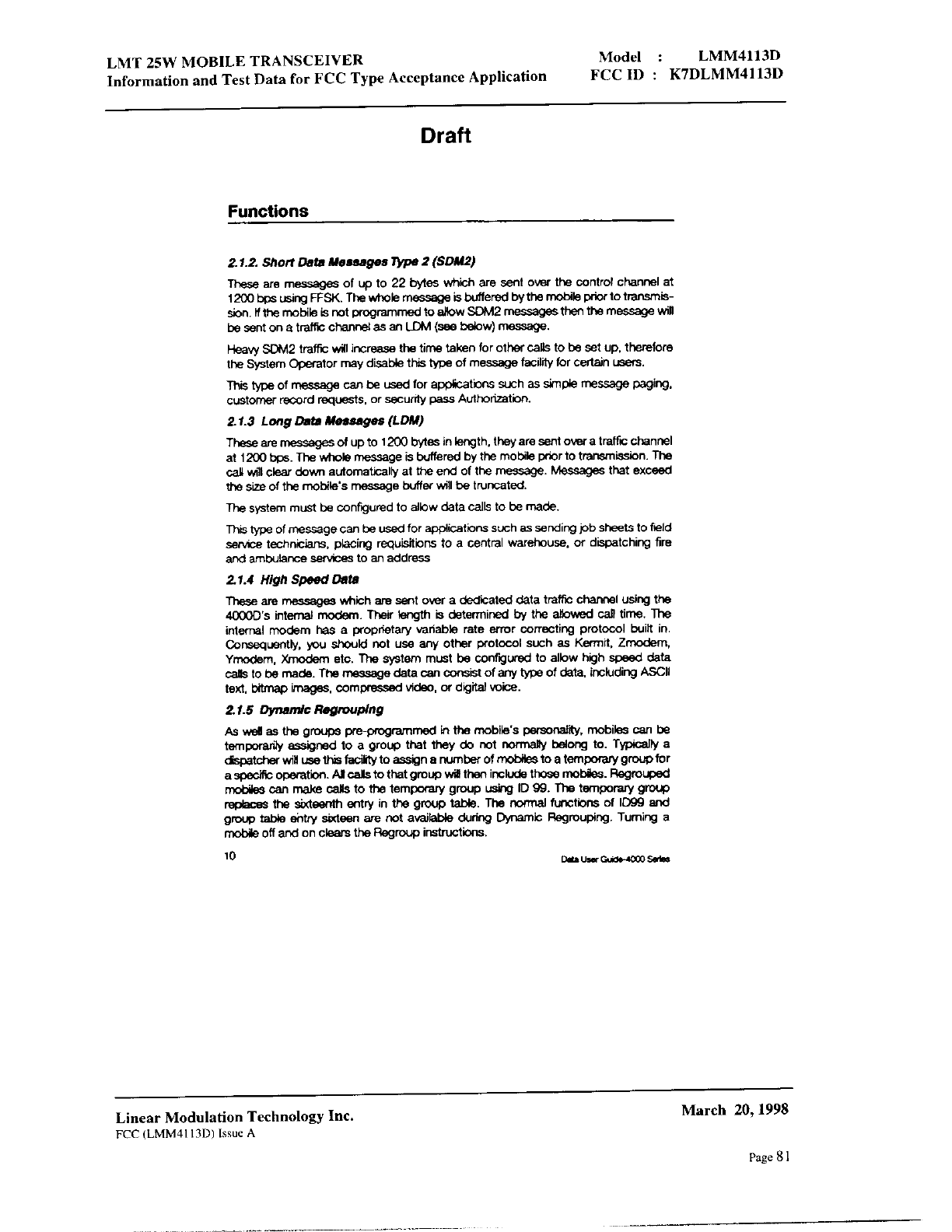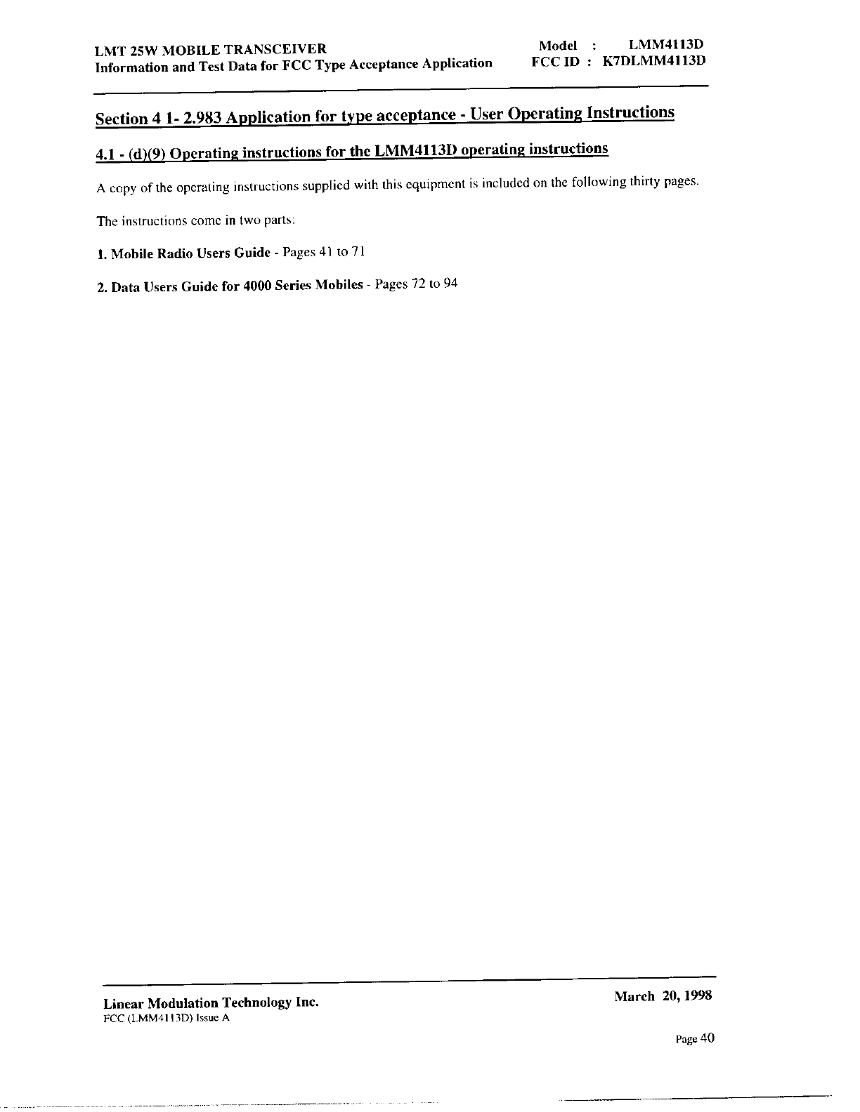 Linear Modulation Technology LMM4113D User Manual 8 Manual