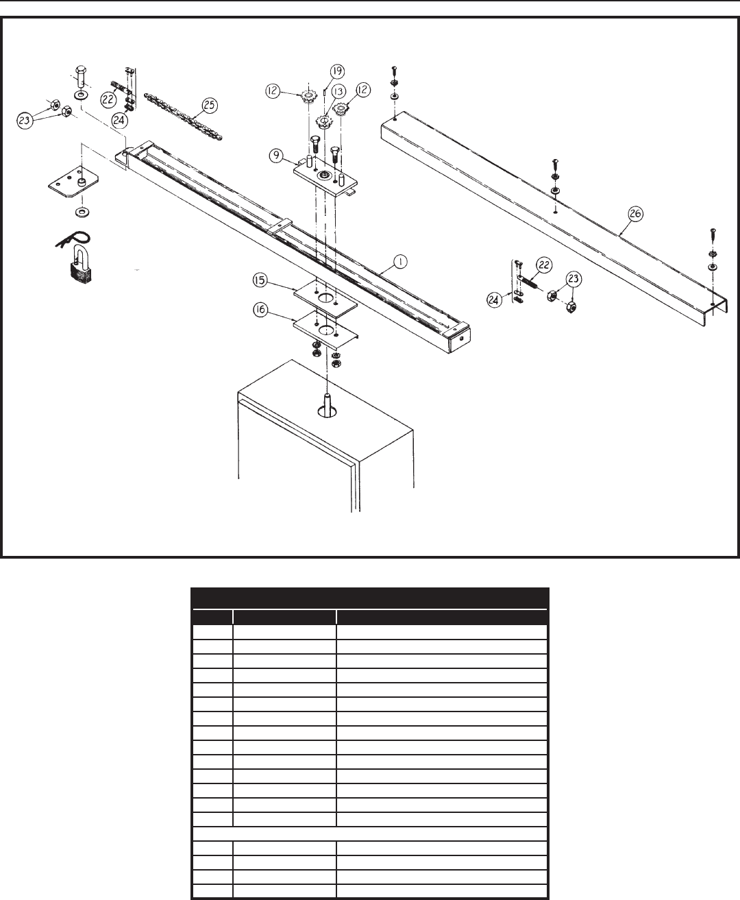 GATE ARM ASSEMBLY MECHANICAL PARTS LIST