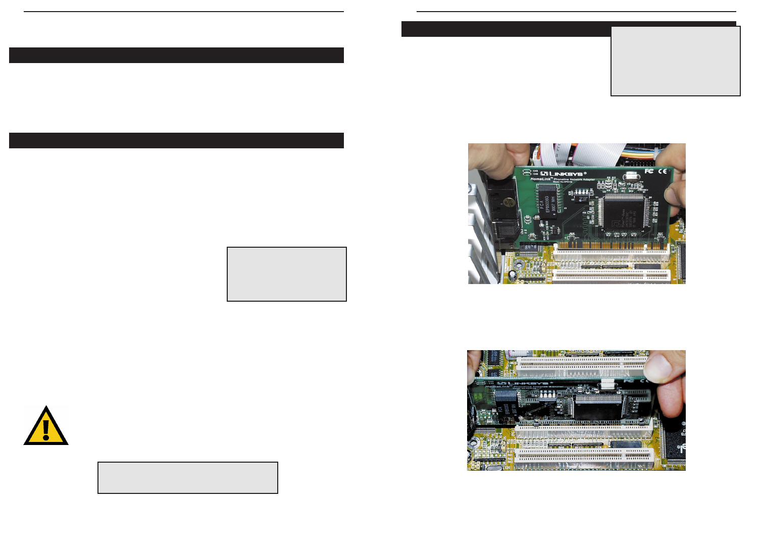 Network Card or HomeLink Network In a Box, contact Linksys Customer