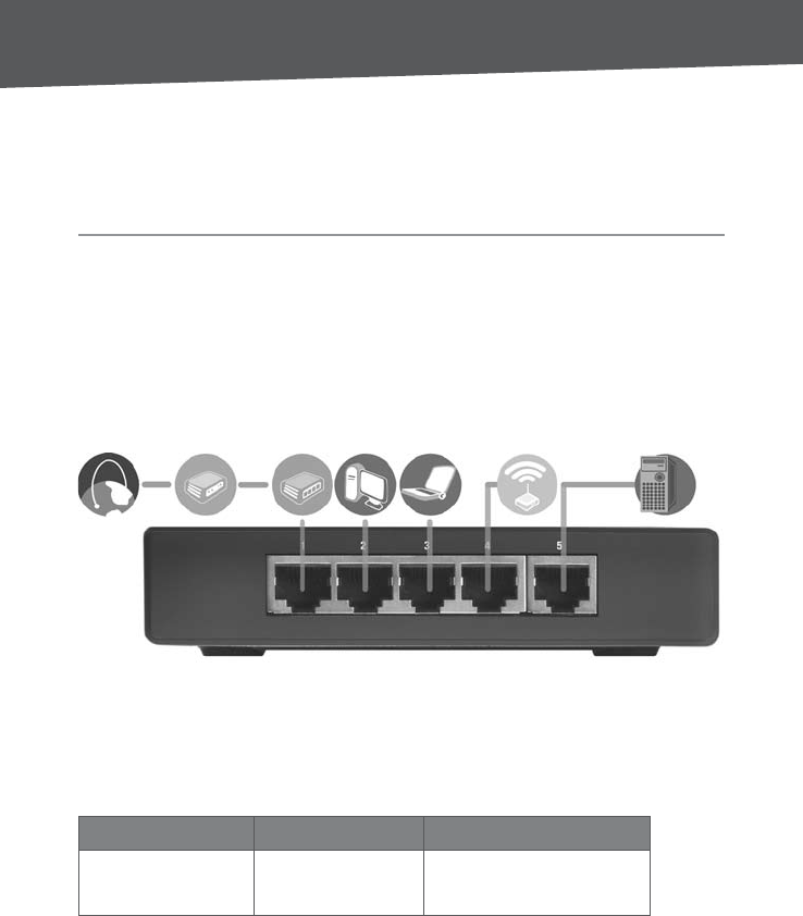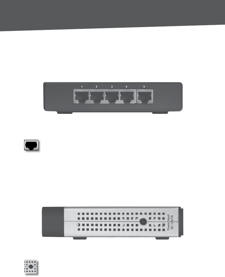 LEDs and ports. Pictured here is the 5-Port Switch; however, the 8-Port