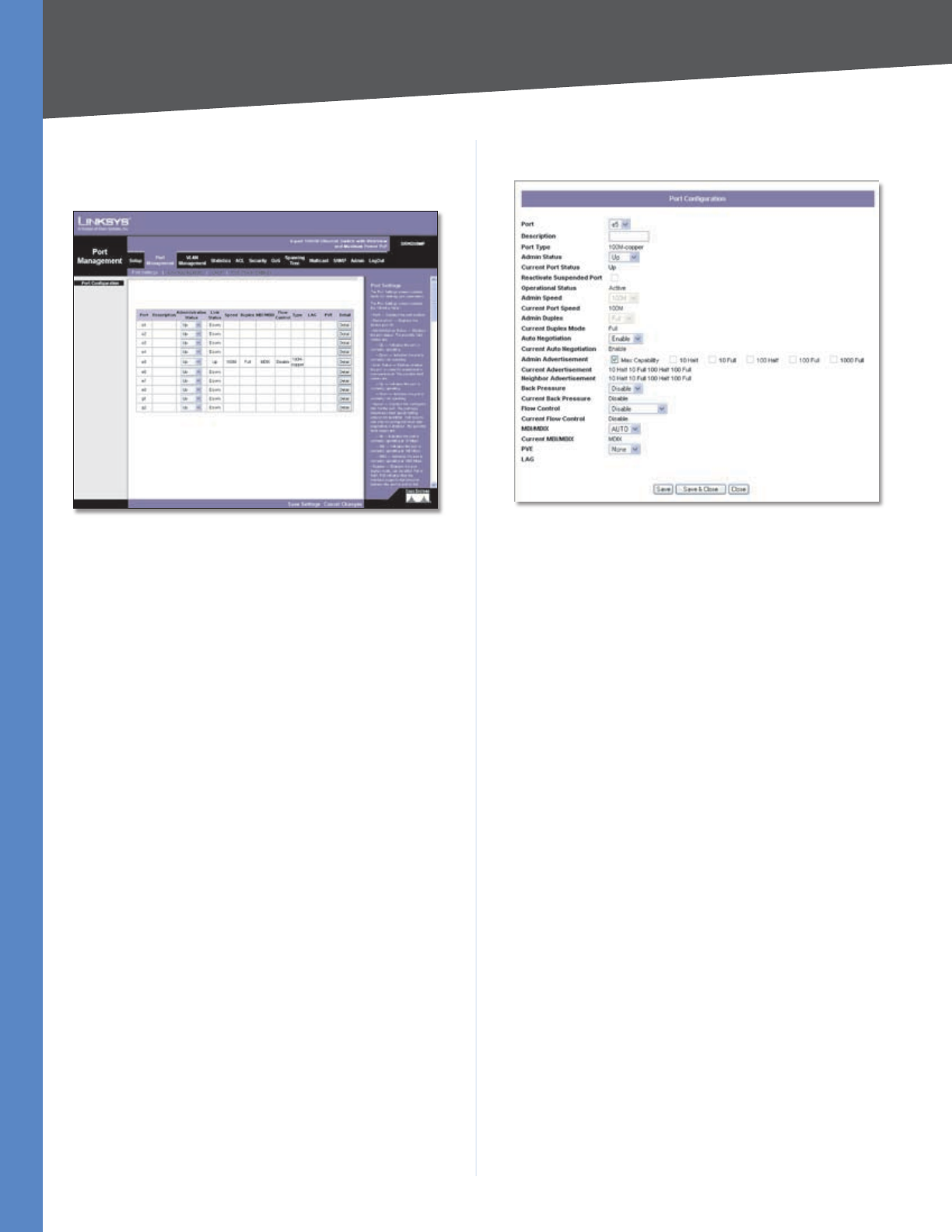 - Port Management > Port Settings