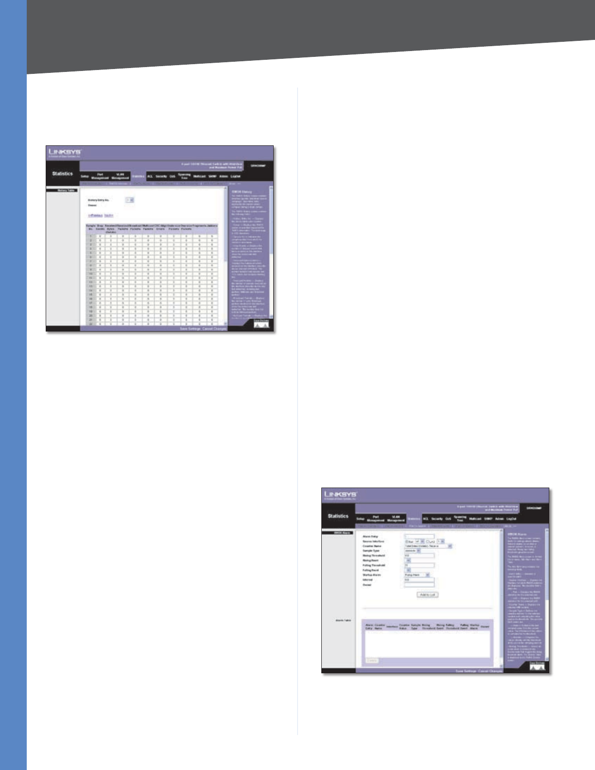 - Statistics > RMON Alarms