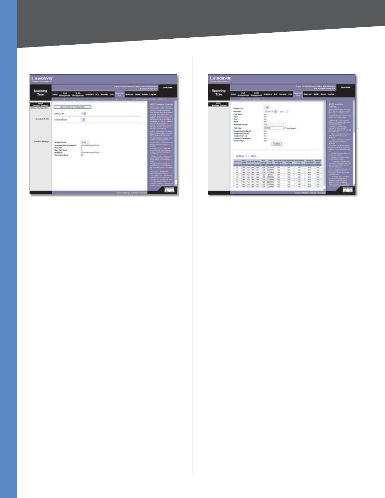 - Spanning Tree > MSTP Instance Settings