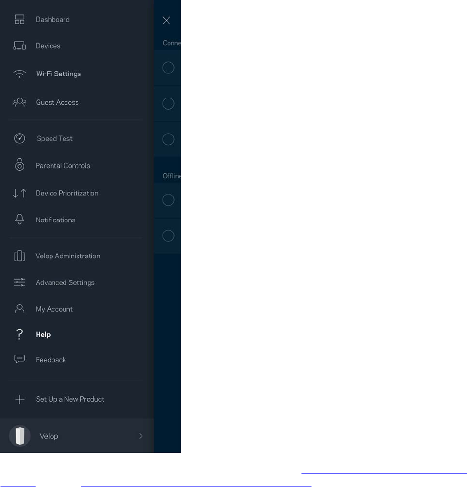 • Linksys app help (launch the app and click Help in the main navigation menu)