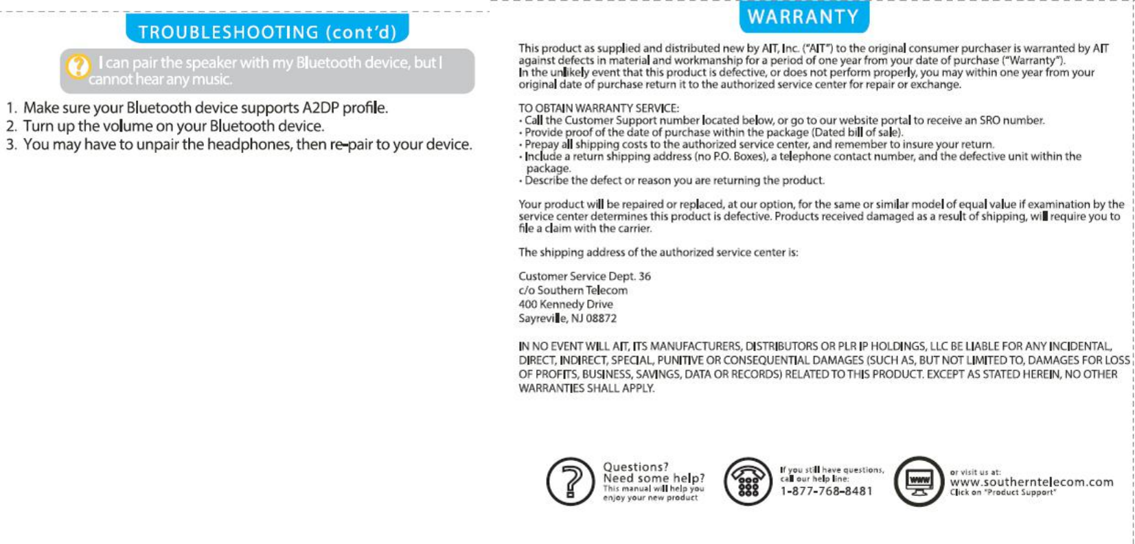 Linpa Technology LBS77 Bluetooth Headphone User Manual