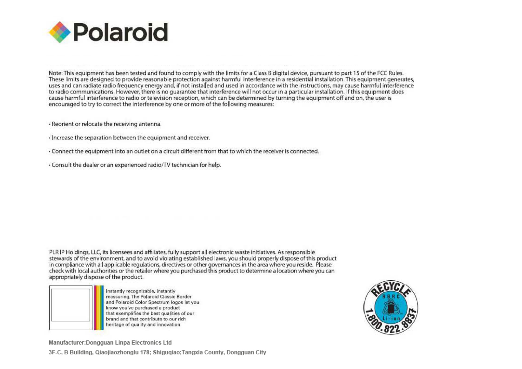 This device complies with part 15 of the FCC Rules. Operation is subject to the following two conditions: (1) This device may not cause harmful