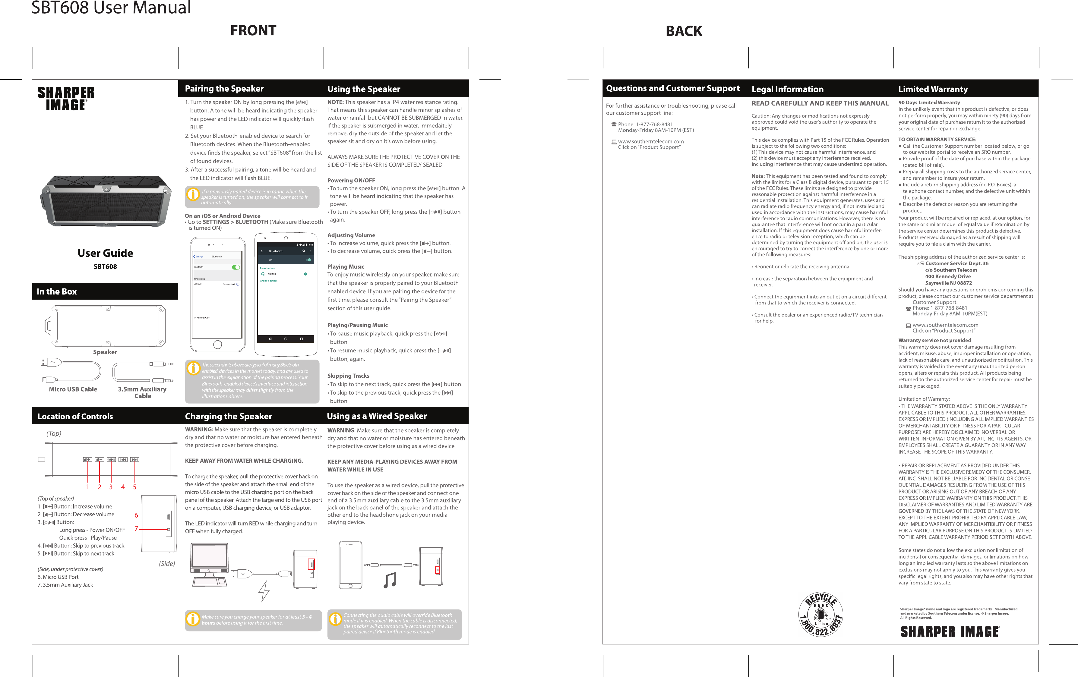Linpa Technology SBT608 Bluetooth Speaker User Manual SBT608