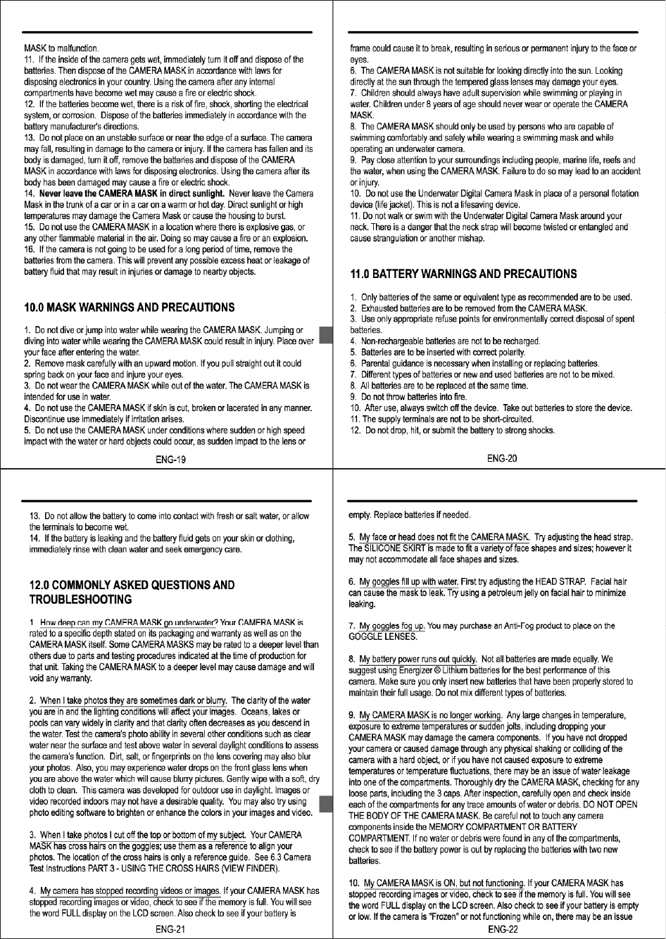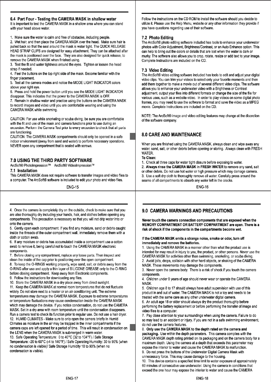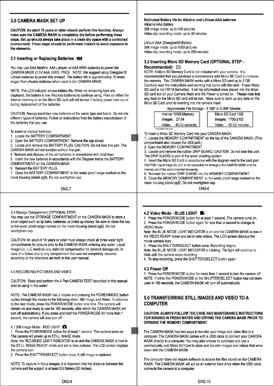 Liquid Image 302 Underwater Digital Camera Mask 5.0MP User Manual manual