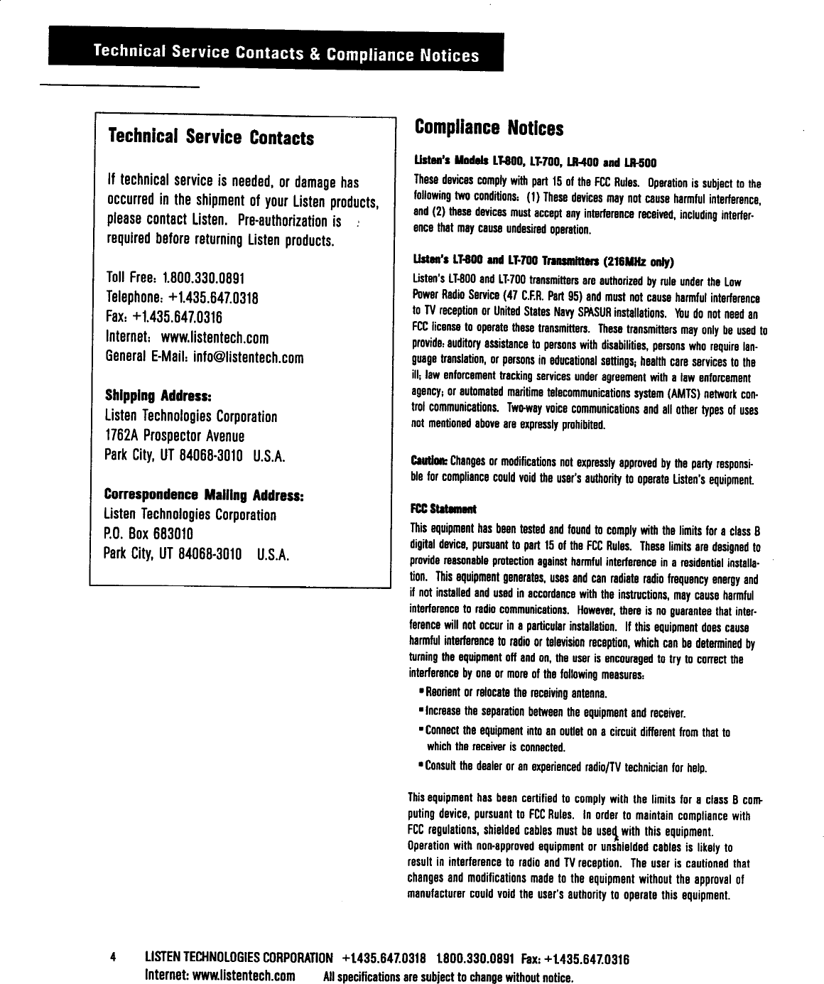Listen Technologies 700-001 Portable Transmitter User Manual Utility