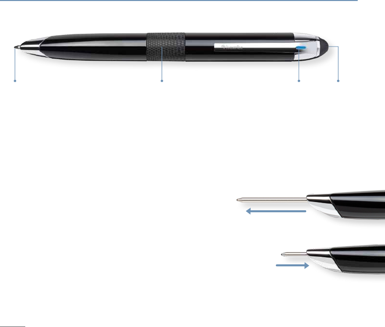on and retracts into the housing body when the smartpen is off.
