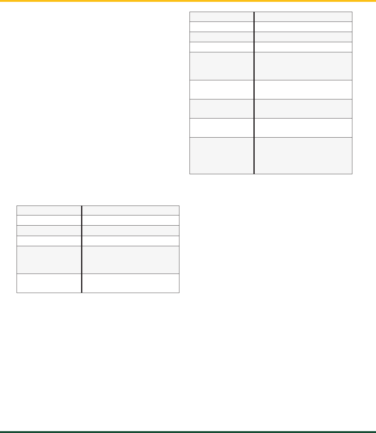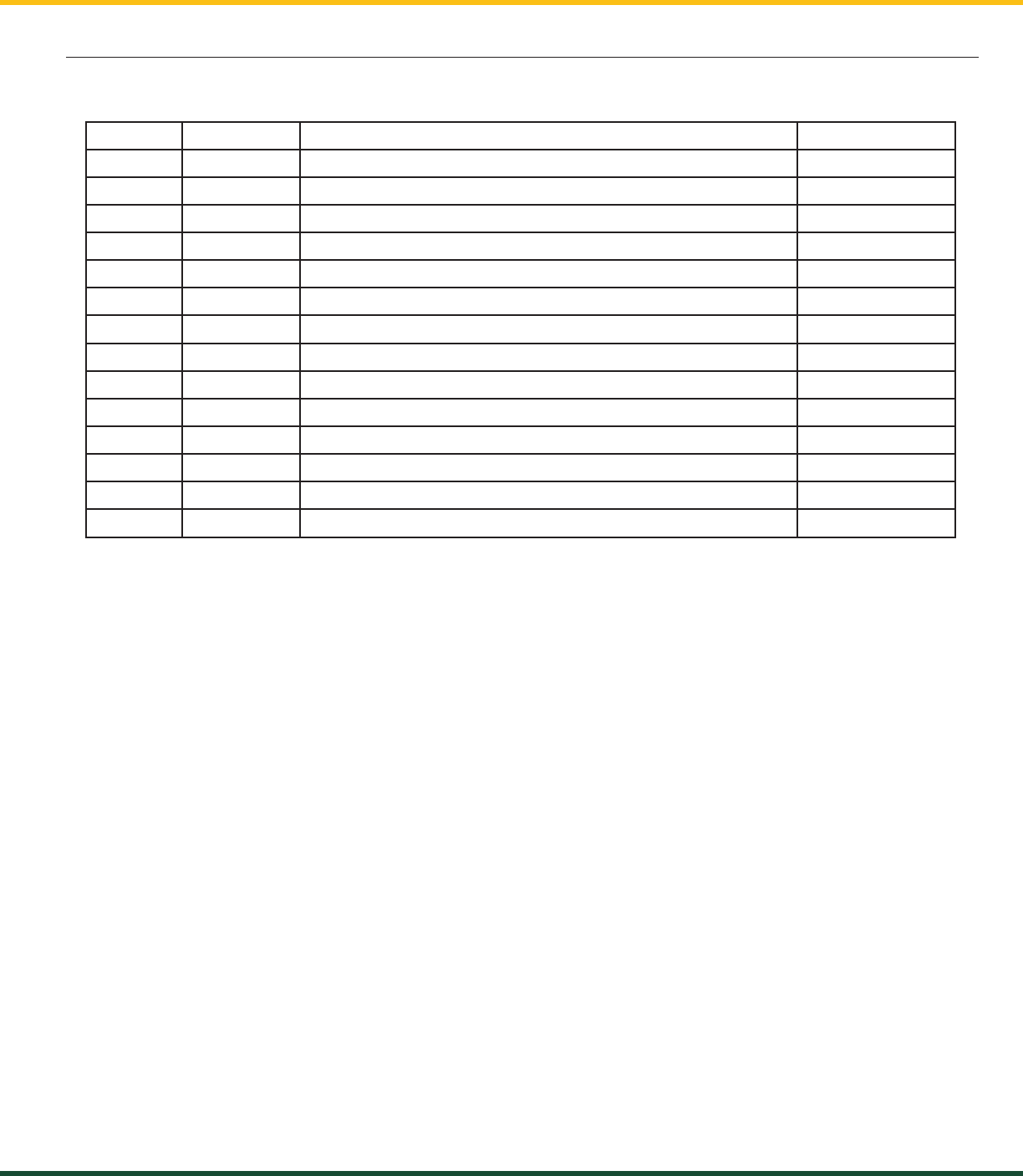 Table: Full report column headings