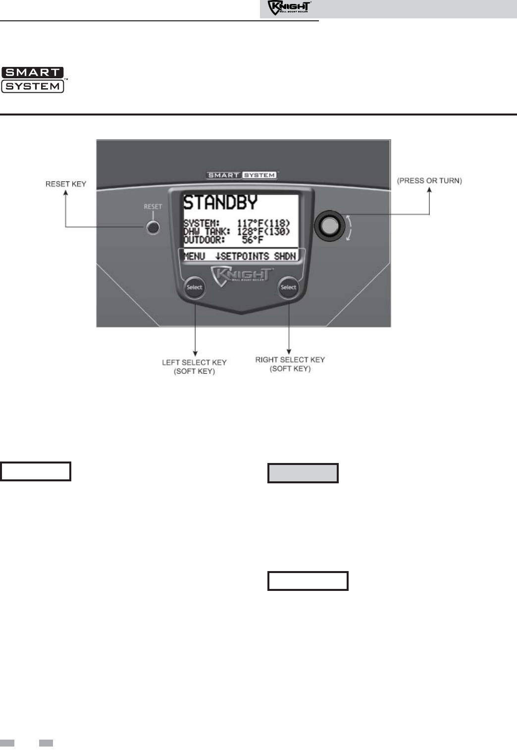 ON Press the RIGHT SELECT key to turn the boiler ON.