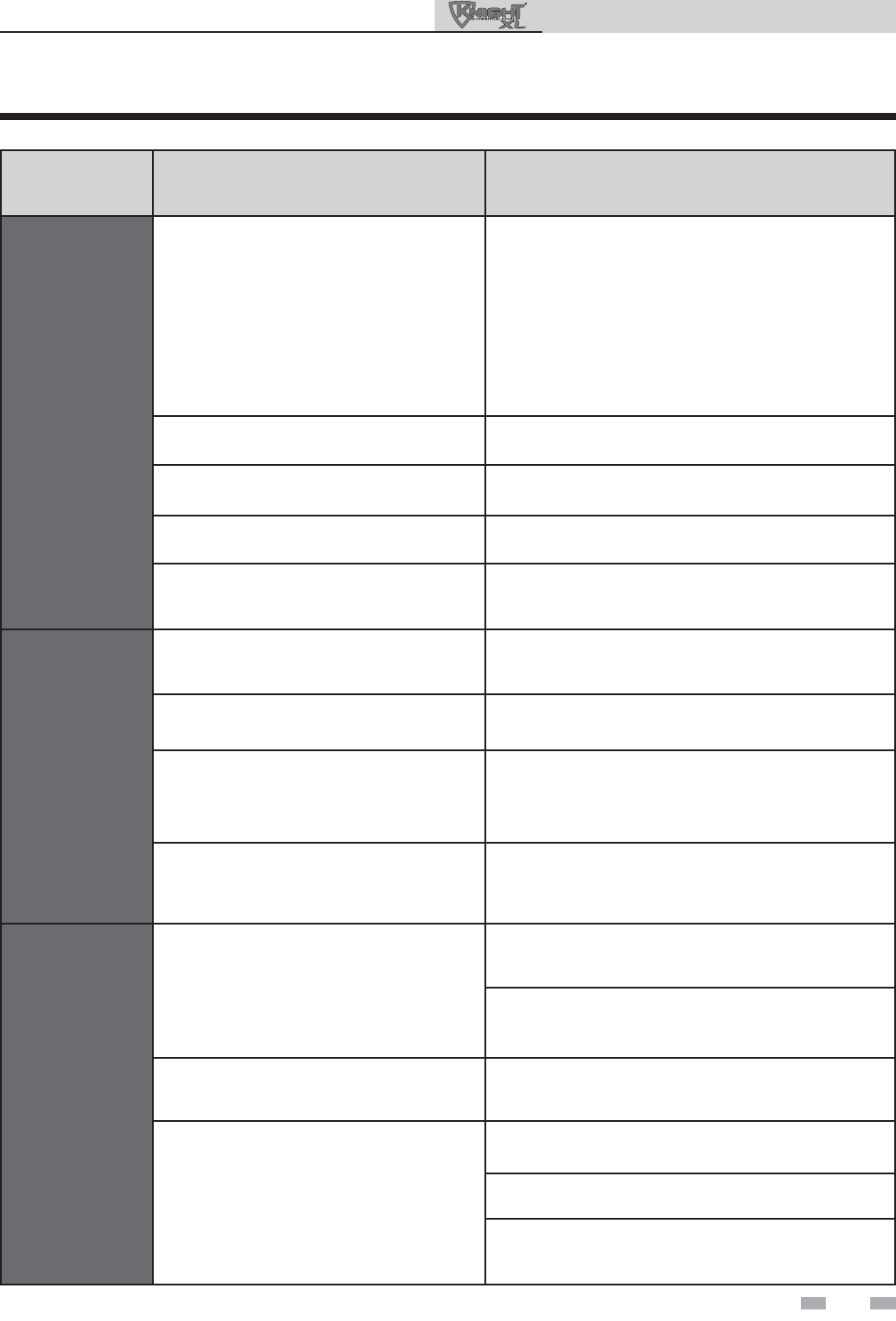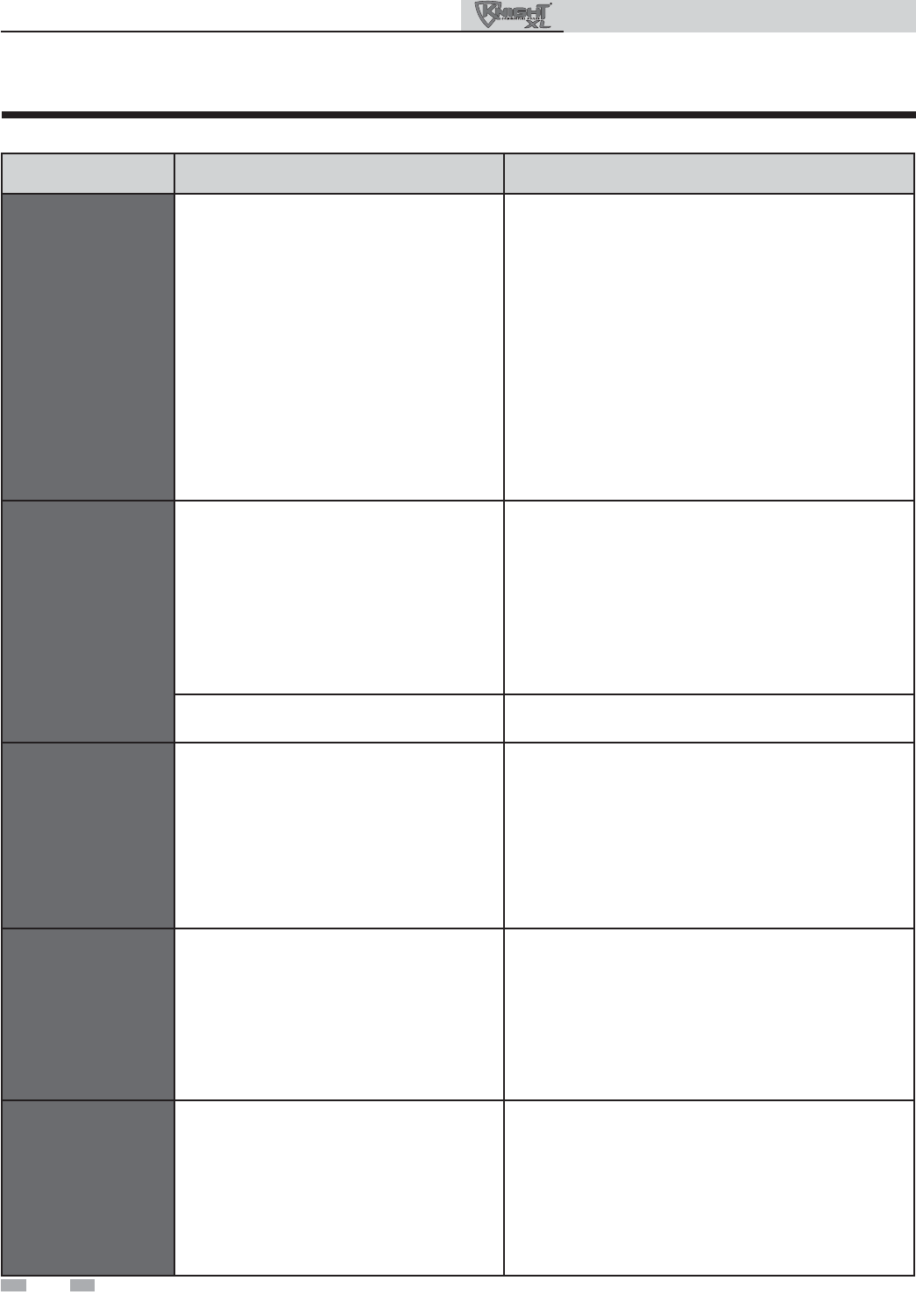 reference the chart below for possible causes and