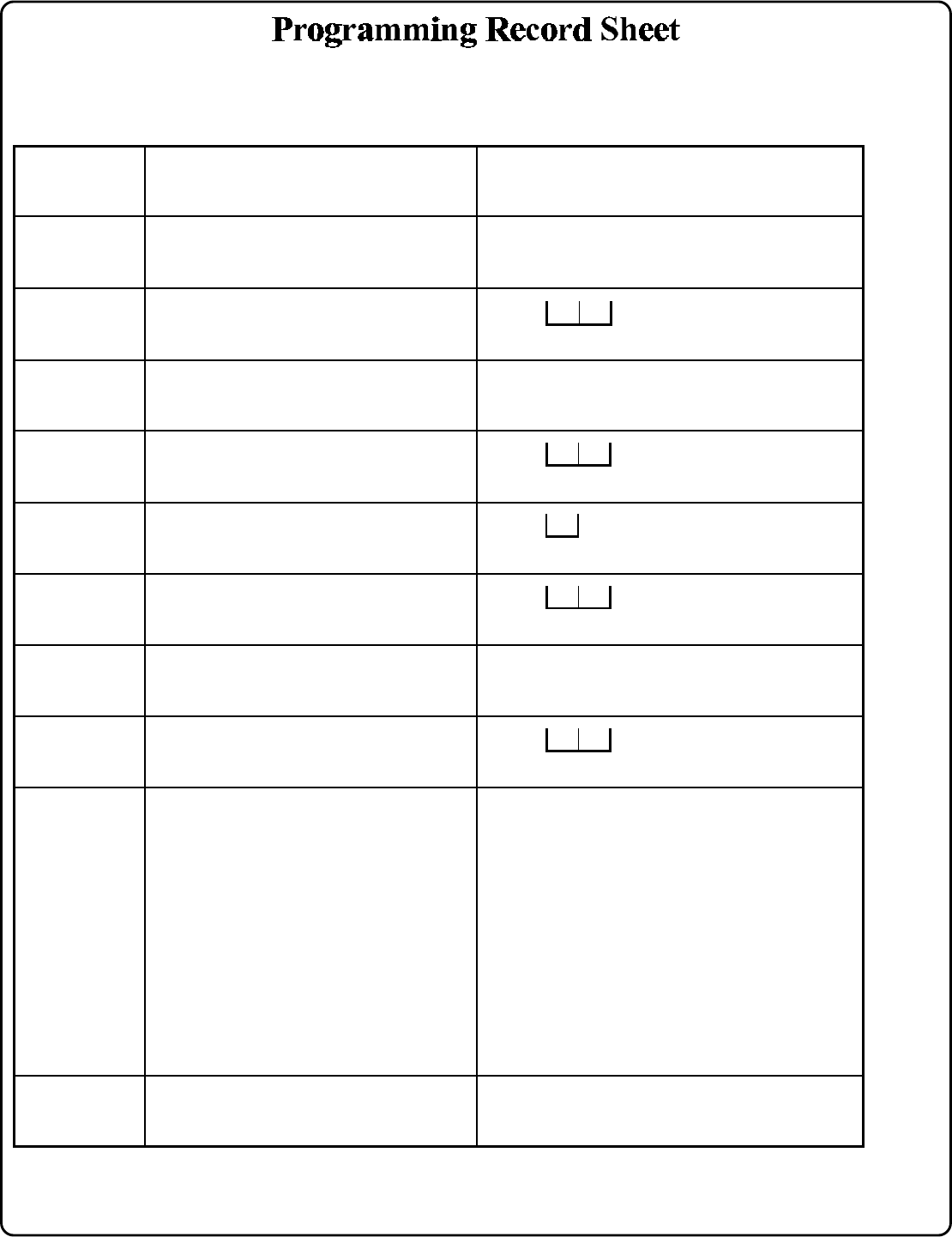 Programming Record Sheet ----------------------------------------------------------------------25